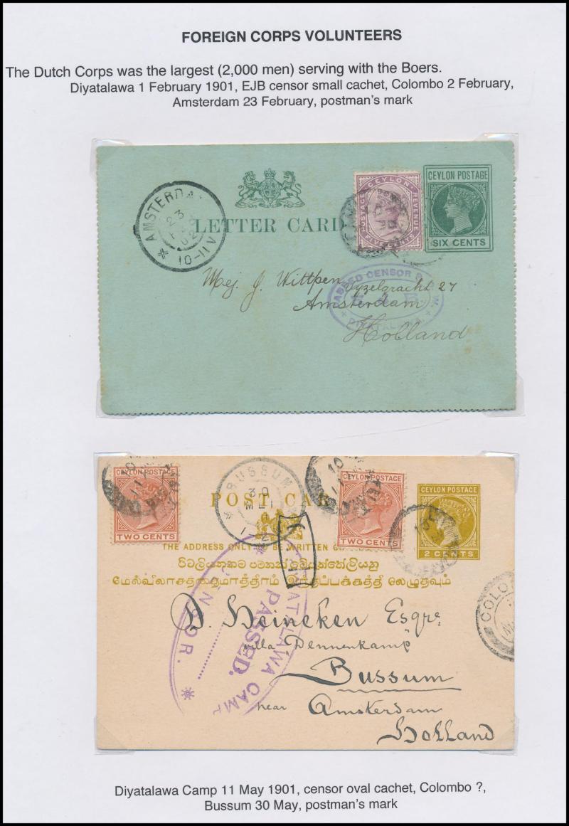 from overseas probably to Foreign Volunteers who had served with the Boers including a letter card from Belgium (toned), some attractive postcards & postal stationery, etc, condition rather mixed but a bargain at the estimate.