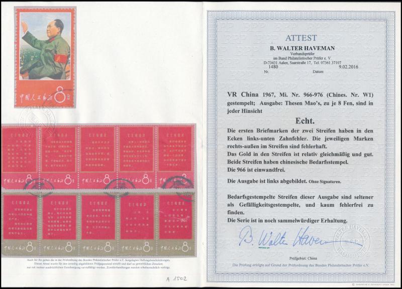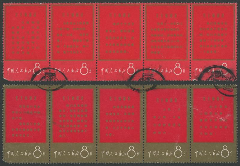 1967 Thoughts of Mao Tse-tung 8f Mao Tse-tung single and 8f se-tenant strips of 5 on red & on gold SG 2343, 2344a & 2349a, postally