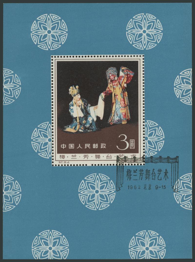 1962 Stage Art of Mei Lan-fang 3y M/S SG 2044a, original 108x147mm size, CTO with 'stage curtain' First Day of Issue cancel of