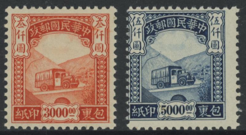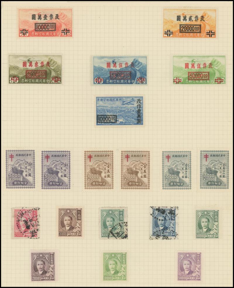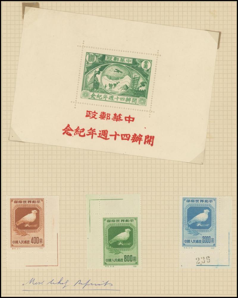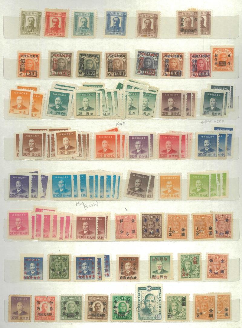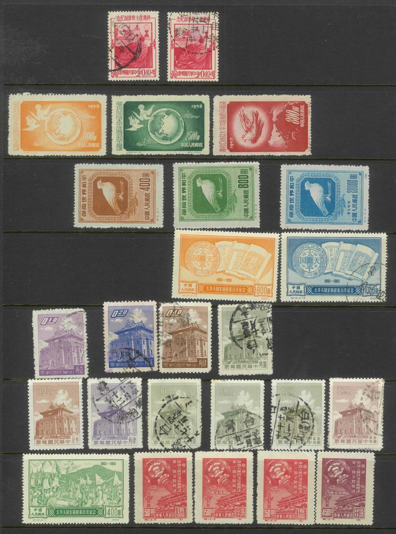 lightly mounted, Cat £475 (US$165) for unmounted. Unused Parcel Post were not sold to the public; these presumably originate from stock seized by the Communists.