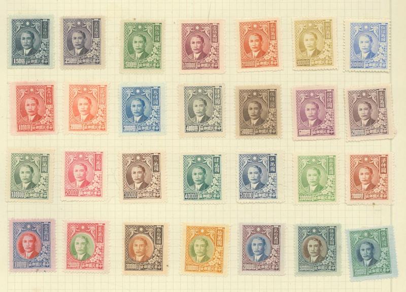 1950 Surcharges on North-Eastern Provinces Sun Yat-sen Re-Engraved Character set SG 1436-1449, characteristic rough 'fluffy' perfs,