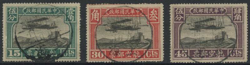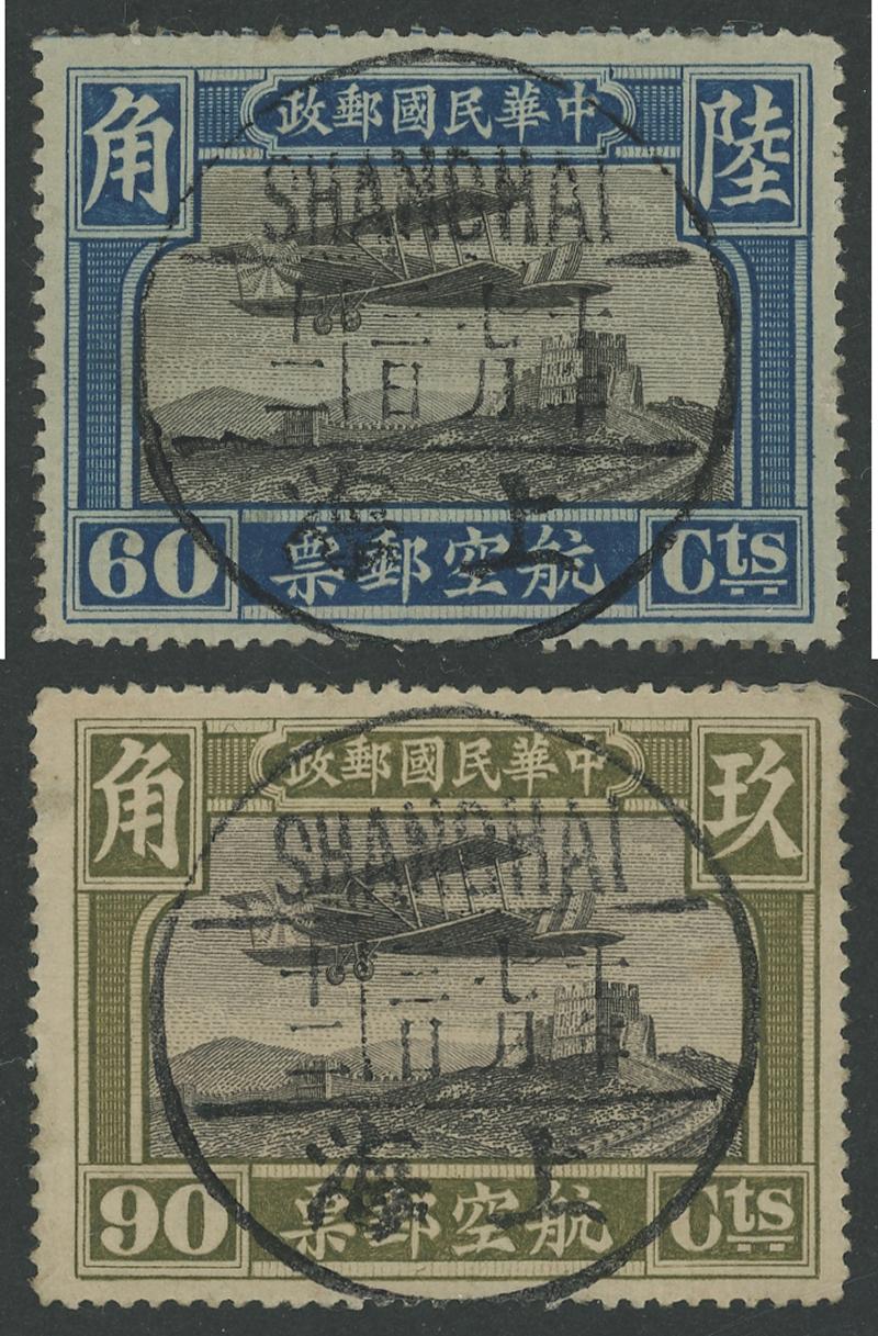 1921 Airmails with Striped Tail-Fin 15c to 90c set SG 352-356 (Chan A1-5), neat Shanghai cds cancels, a couple of minor blemishes,