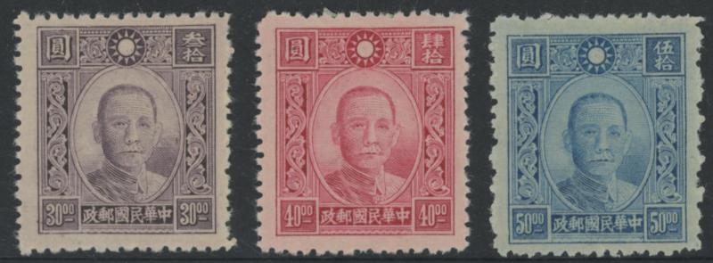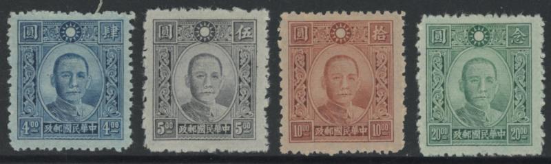 1942-45 Sun Yat-sen Paicheng Print (Engraved) Rough Perf 12-16 $4 blue to $100 brown set SG 666-674 (Chan 619-627), characteristic