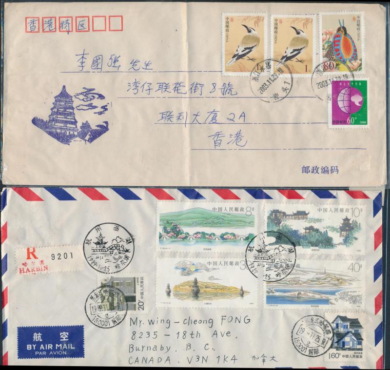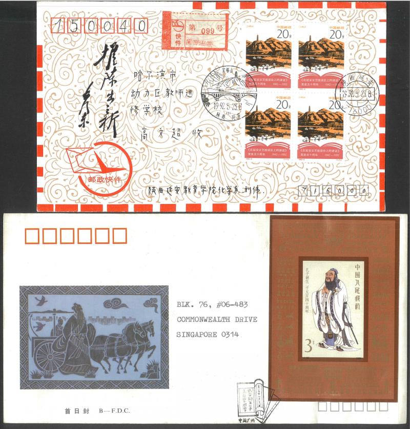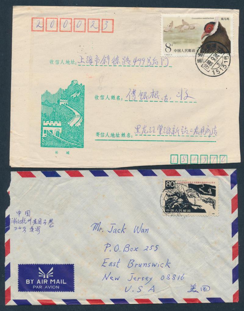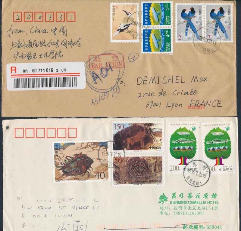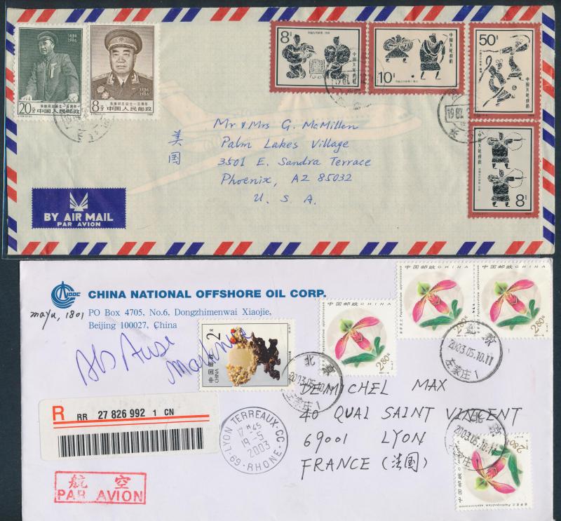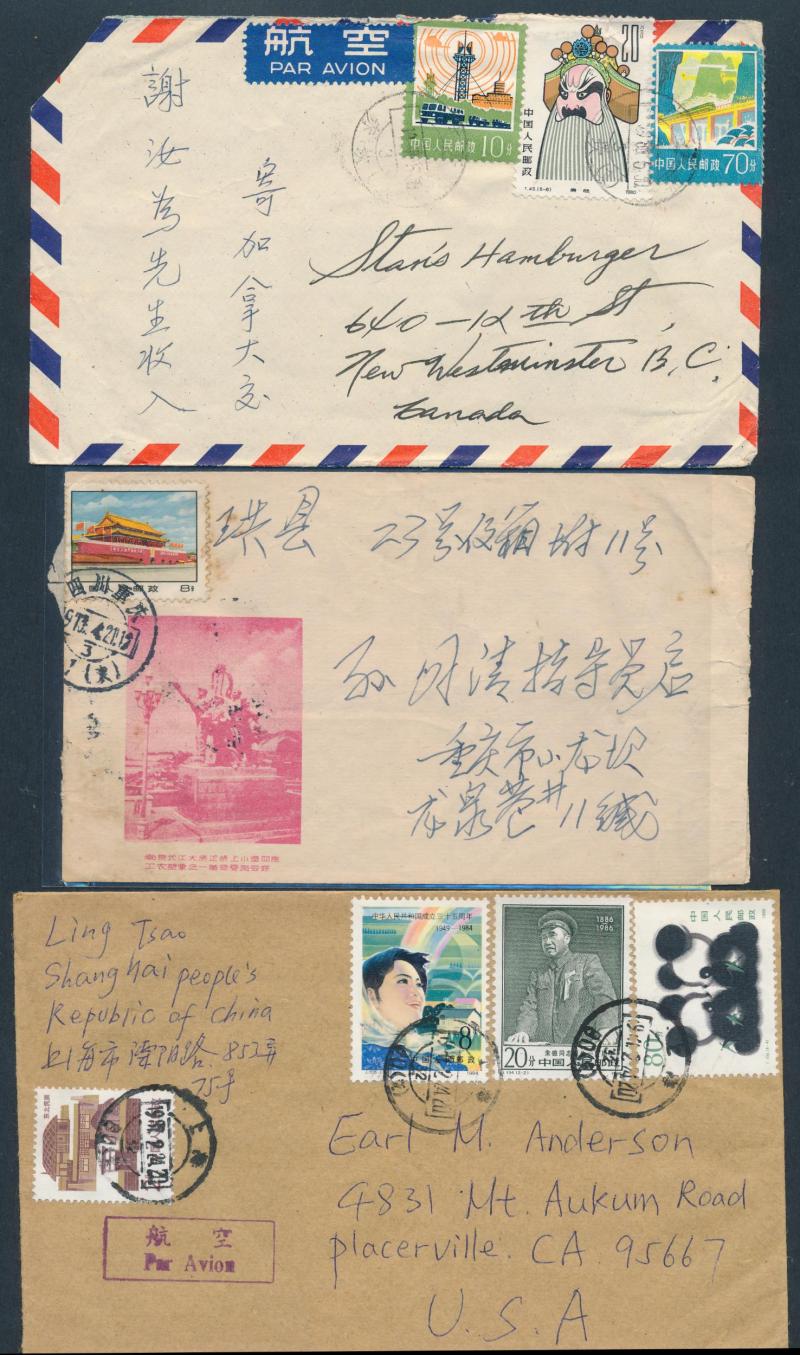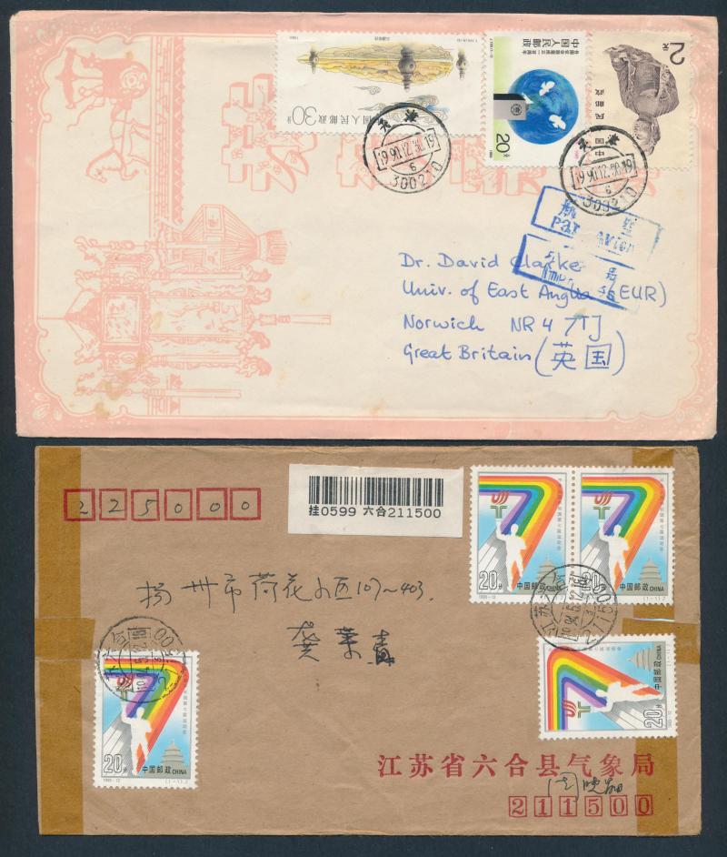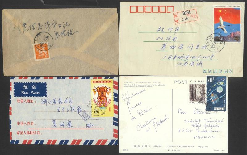 POSTAL HISTORY: Box with PRC commercial internal mail and others to USA & France, etc, with an array of colourful frankings, a few