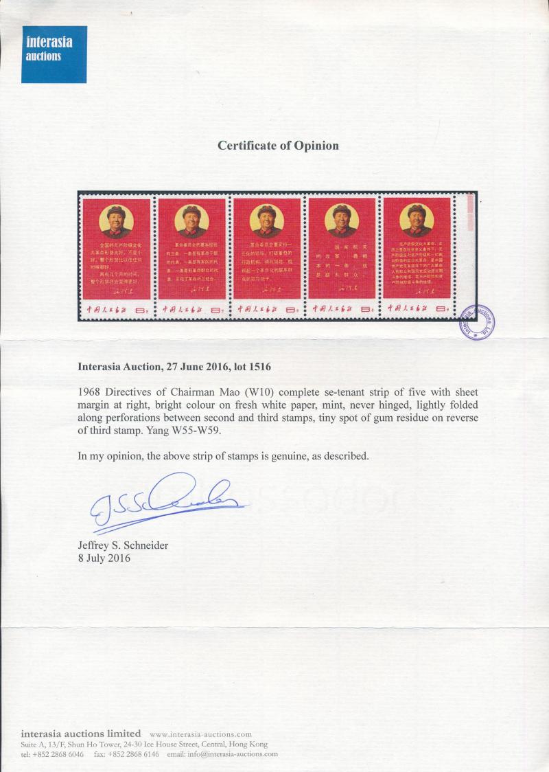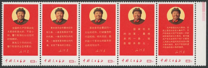 1968 Directives of Mao Tse-tung 8f se-tenant strip of 5 SG 2397a marginal from the right-hand side of the sheet, well-centred,
