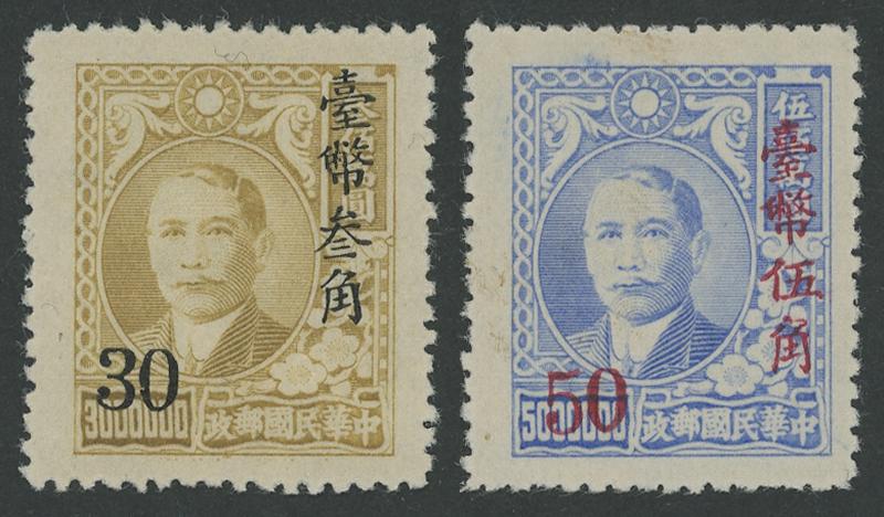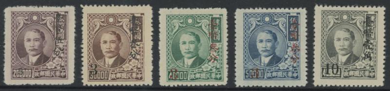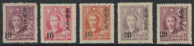TAIWAN: 1950 Nationalist Republic Silver Yuan overprints on Sun Yat-sen Small Figure '5' on $200,000 and Large Figures set SG