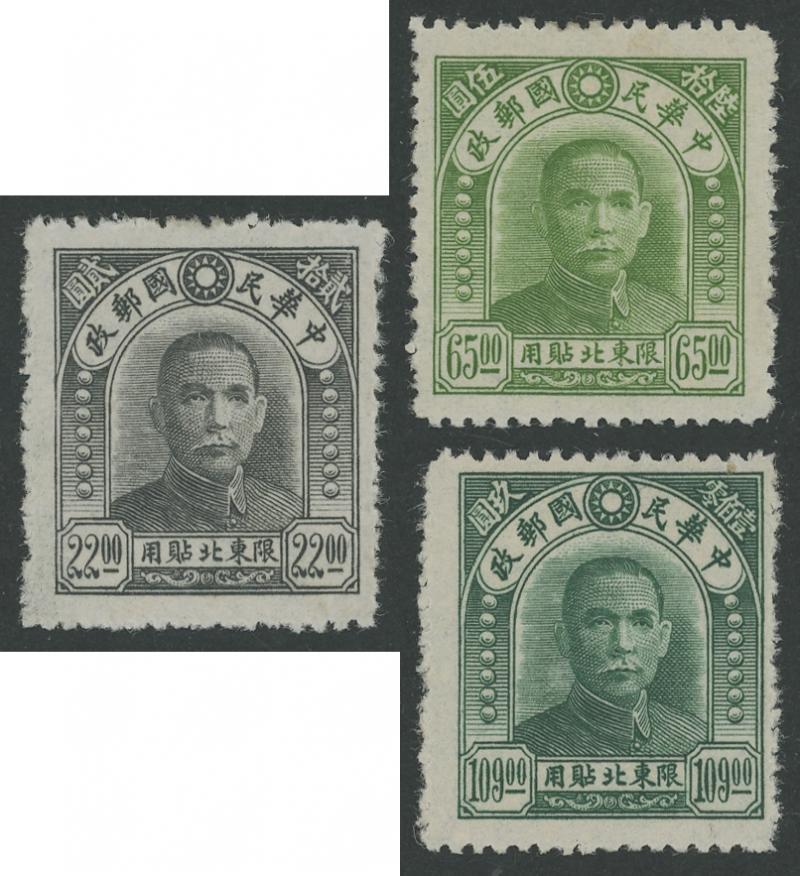 MANCHURIA: 1947-48 North-Eastern Provinces Sun Yat-sen Re-Engraved Character set SG 31-43 (Chan NE53-65) plus extra shade of $100