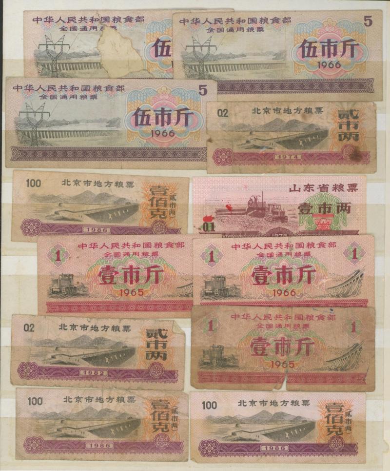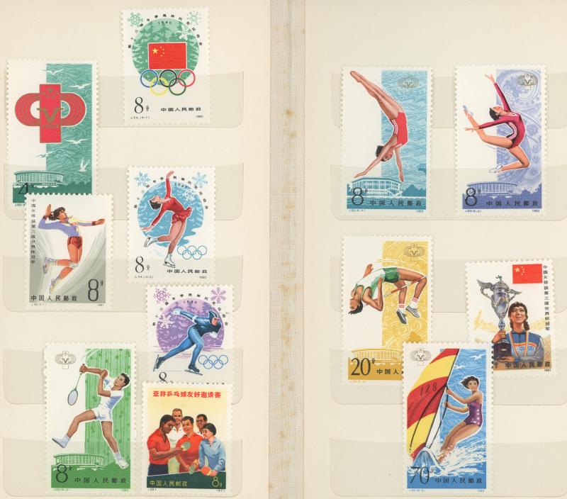 1977-83 issues including 1978 Galloping Horses (10) & 1980 Paintings of Qi Baishi (16); plus stockbook of grain tickets (180+),