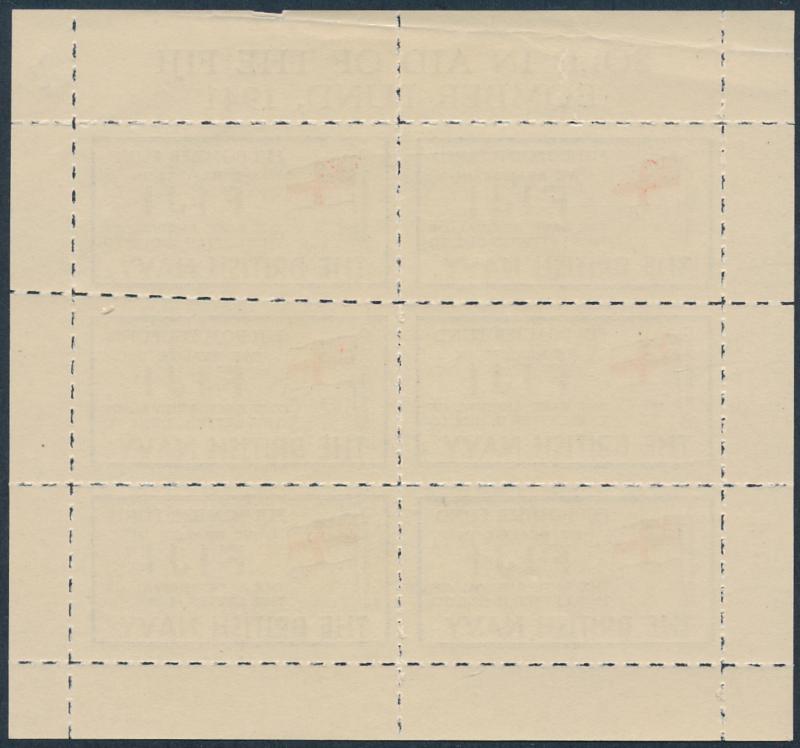 CINDERELLAS: 1941 'FIJI BOMBER FUND/...' label complete sheetlet of 6 (2x3) with inscription in the top margin, minor crease in the