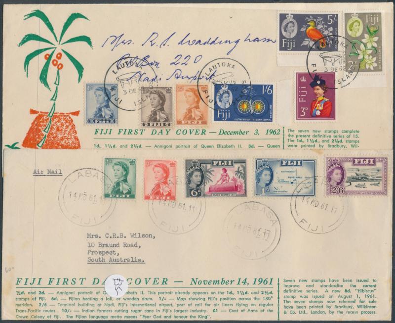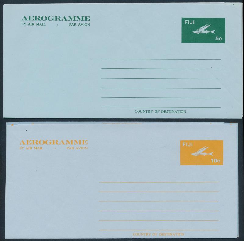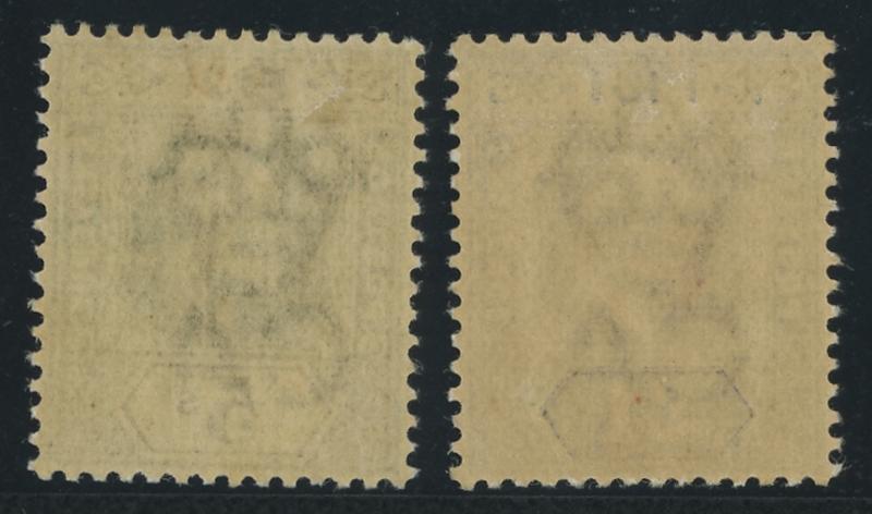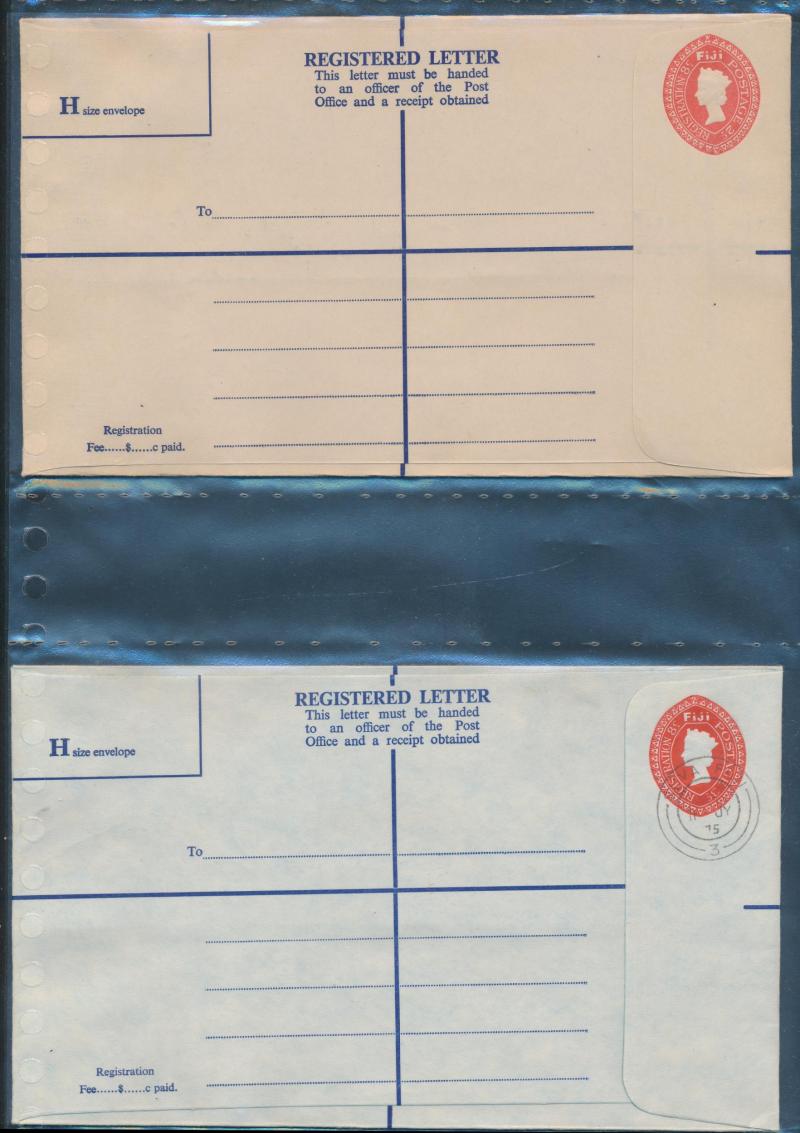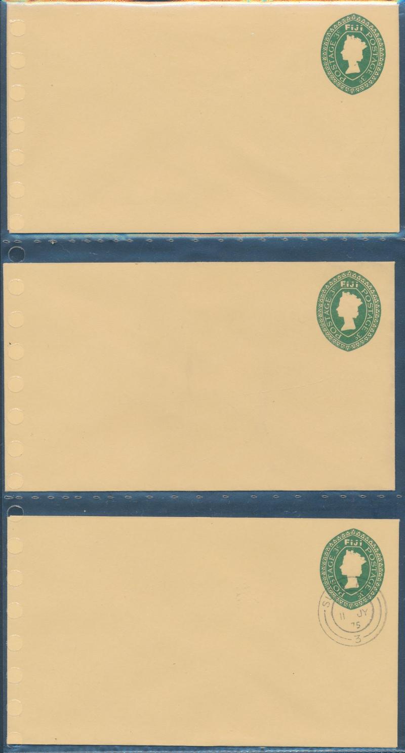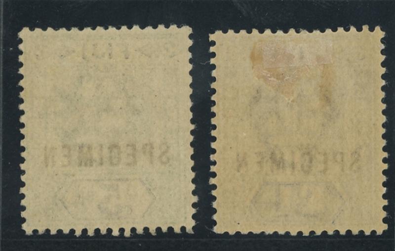 straight-line 'GJ MARKS & C[o]' fine strike on Pirogue 2d rejoined pair; and smaller-font '[G]J MARKS & Co/POST OFFICE/[NAVUA, FIJI' large-part strike on Pirogue 2d; all in violet. Scarce quartet. (4) (Image1)