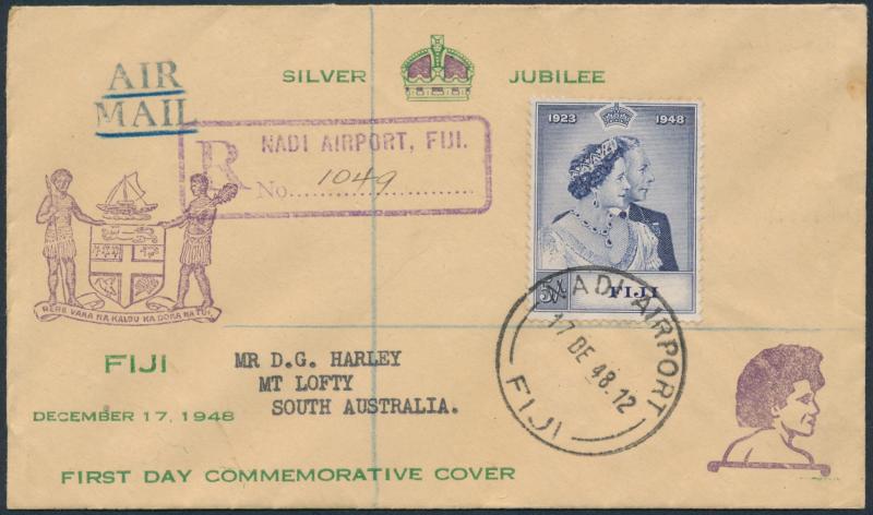 to Suva with Zeppelin 50pf tied by very fine 'Flug-und-Luftschiffhof/ d /FRANKFURT/(MAIN)/RHEIN-MAIN' cds, 'BERLIN-ZENTRALFLUGHAFEN' cds below, 'SUVA/1SP36/FIJI' arrival backstamp, redirected with superb 'PO/3SEP36/LAUTOKA-FIJI' arrival backstamp,