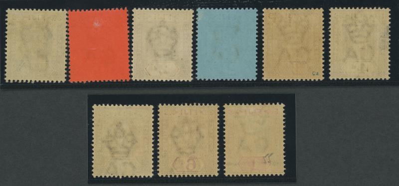 1912-23 KGV Keyplates Multiple Crown CA Watermark ¼d to £1 purple & black/red simplified set SG 125-137a, a few including the £1