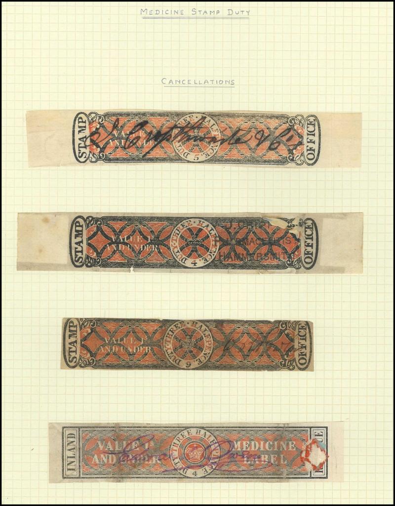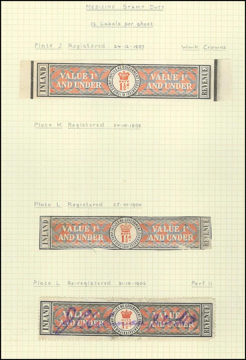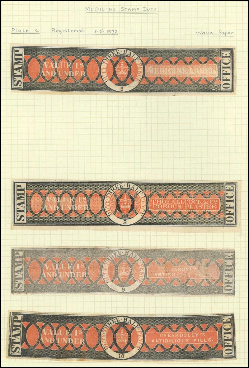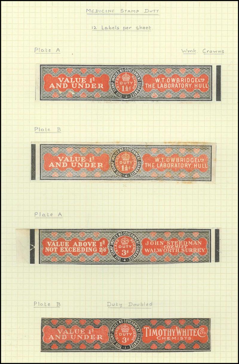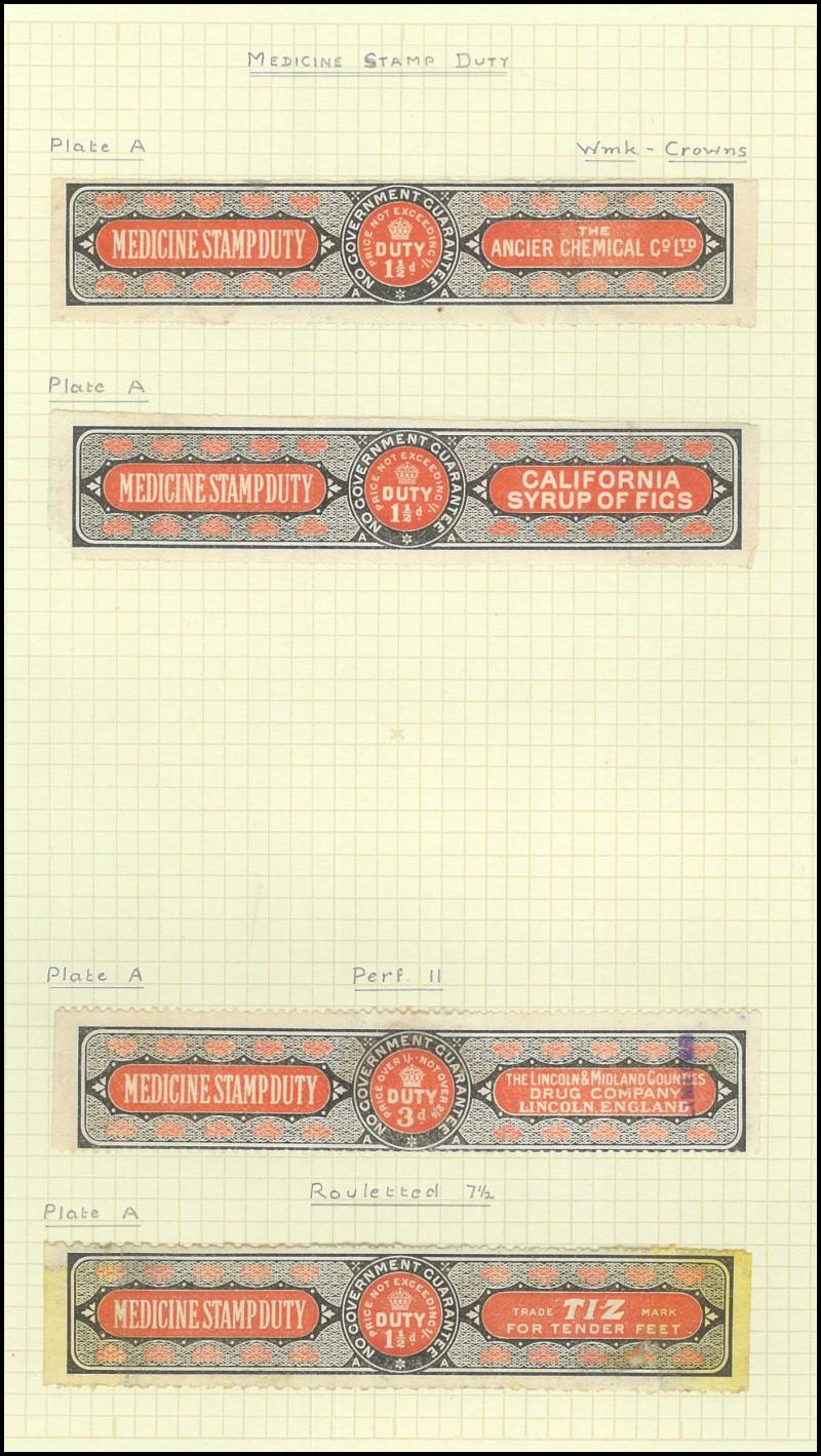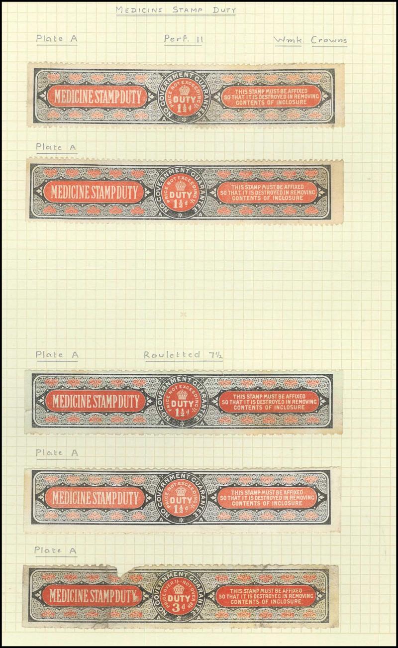 REVENUES: Neatly annotated specialised collection of mostly 19th century Medicine Stamp Duty imperforate & perforated issues,