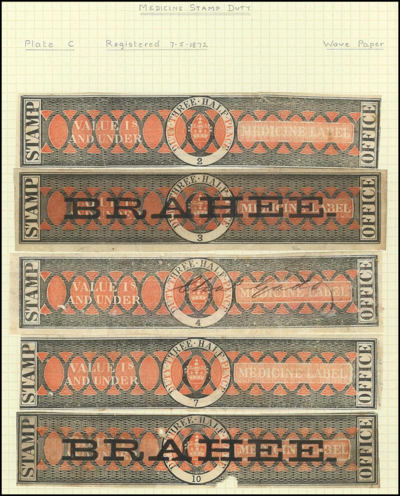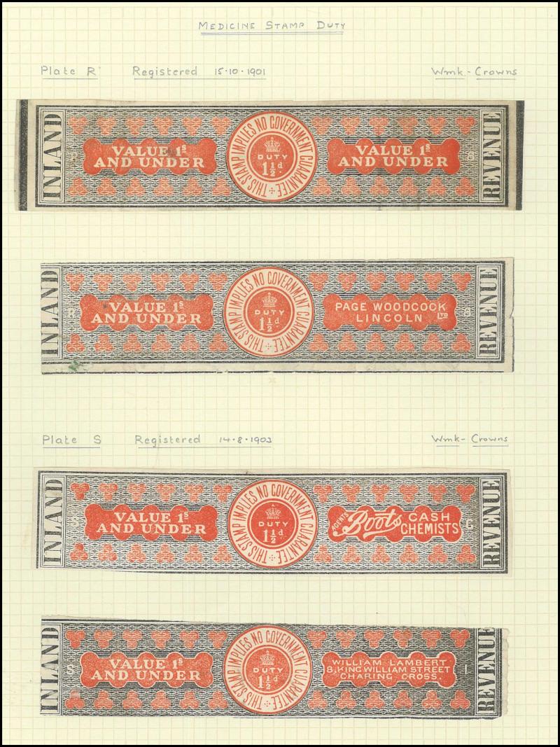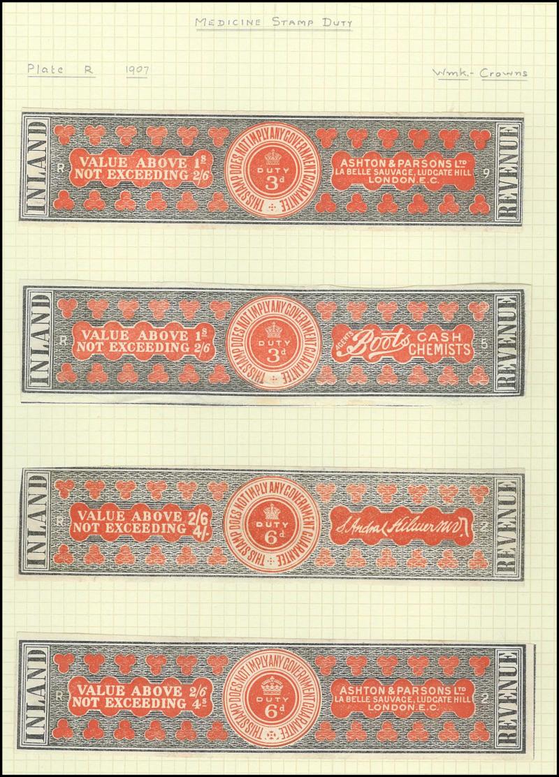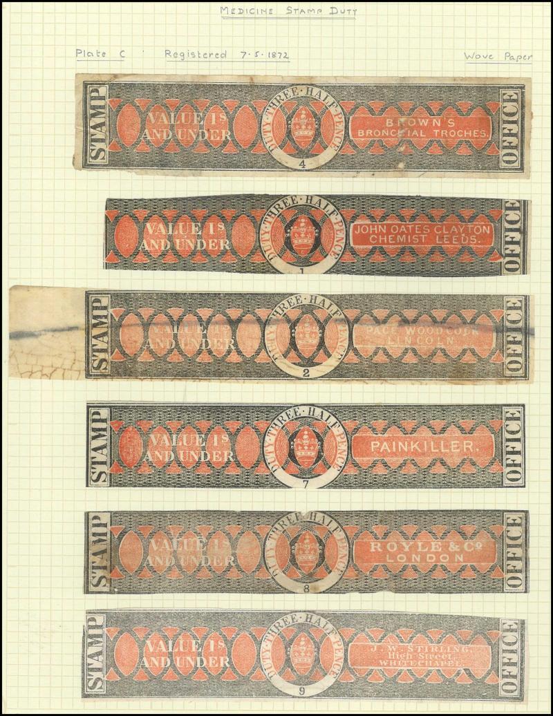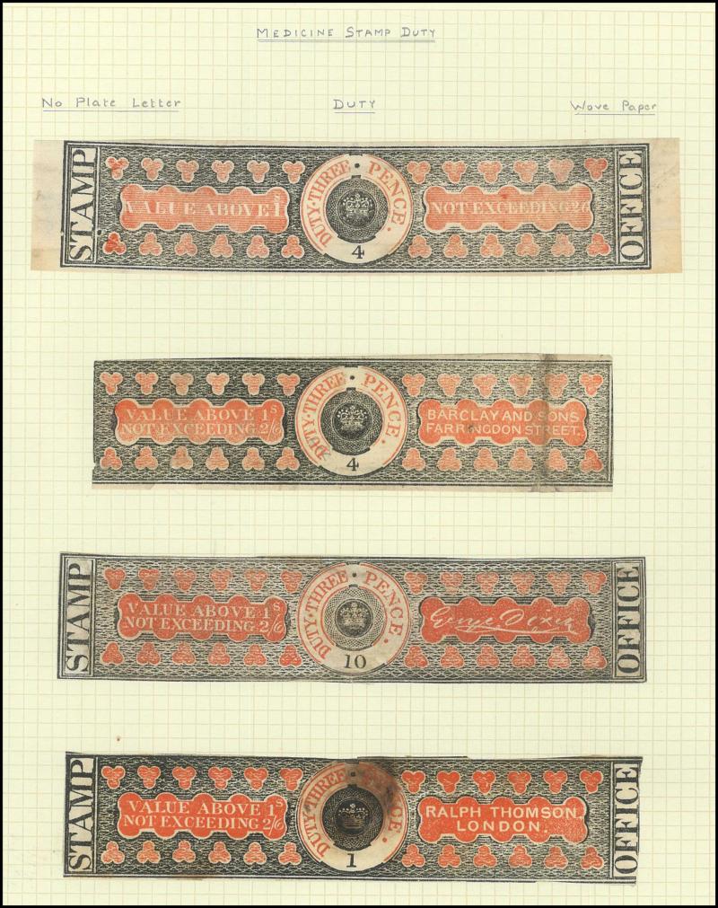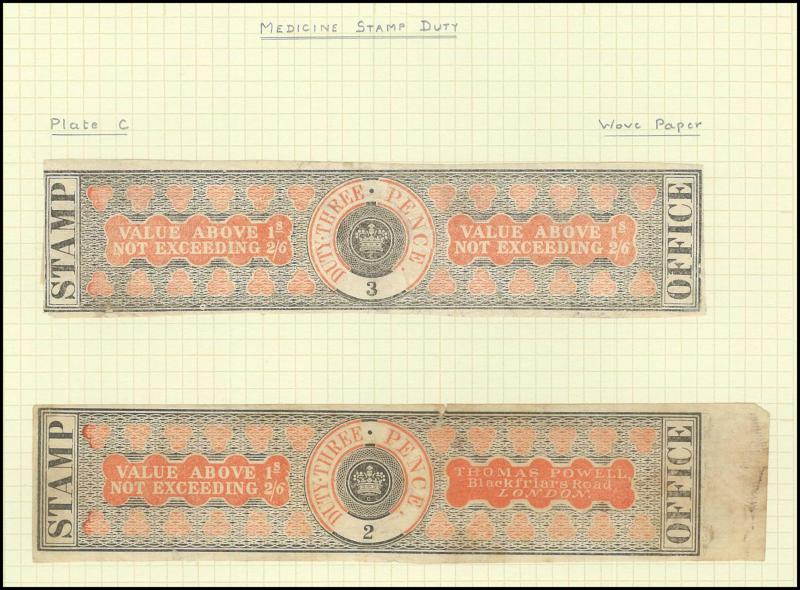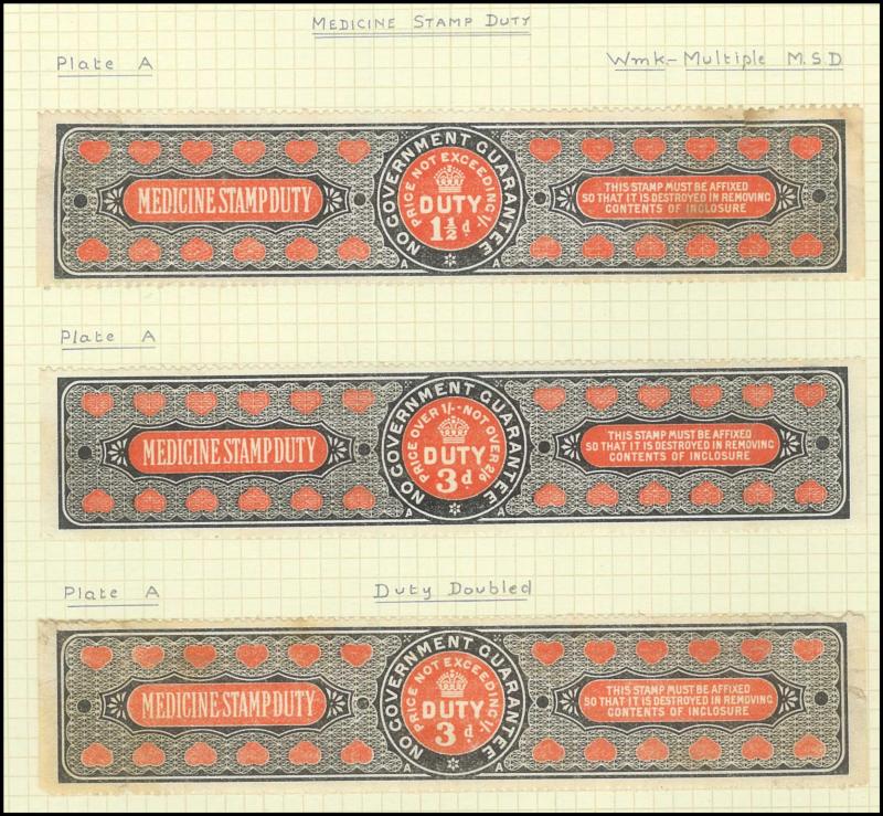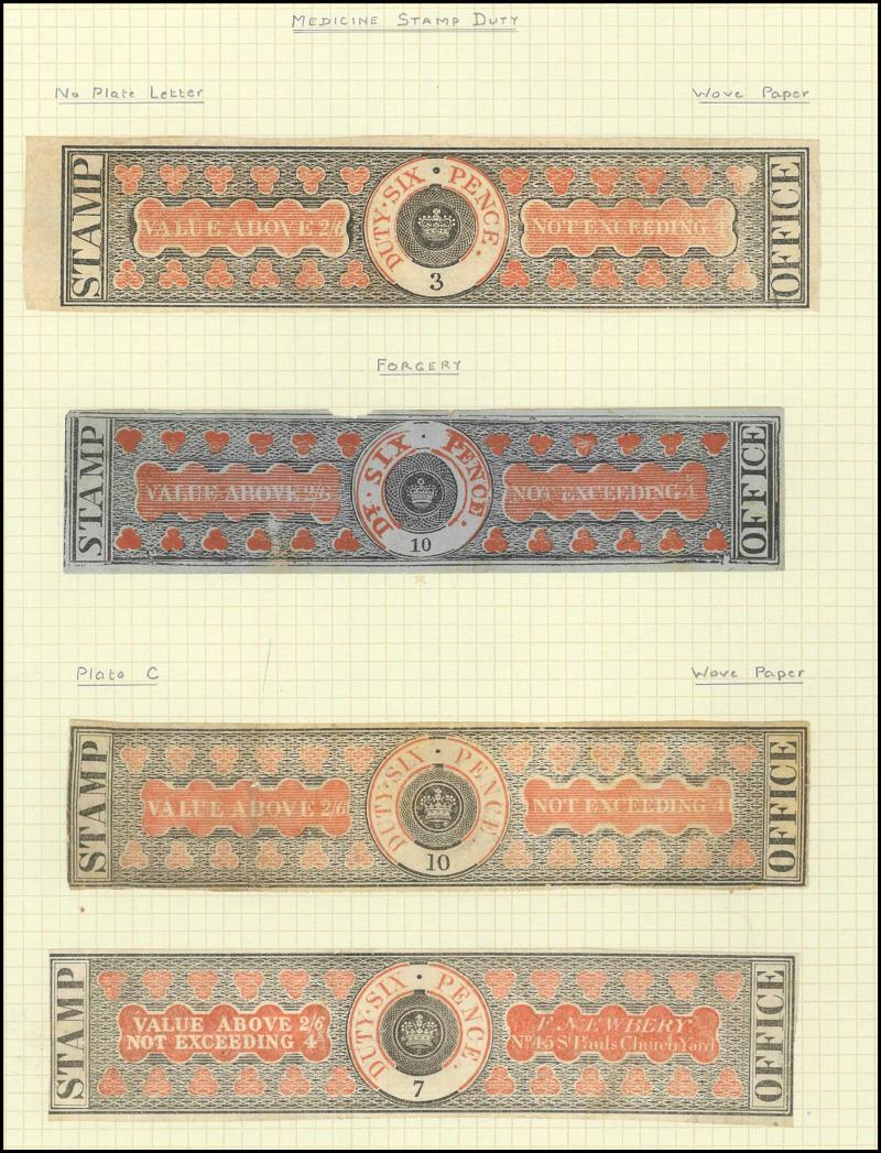 REVENUES: Neatly annotated specialised collection of mostly 19th century Medicine Stamp Duty imperforate & perforated issues,
