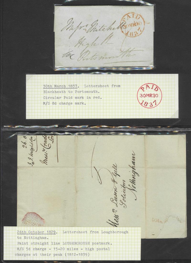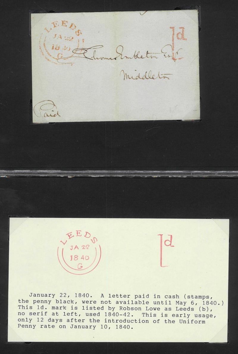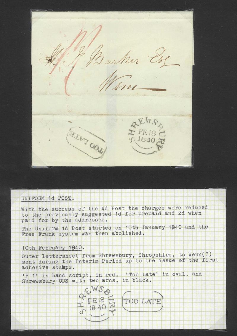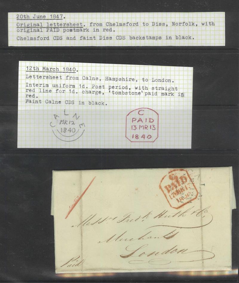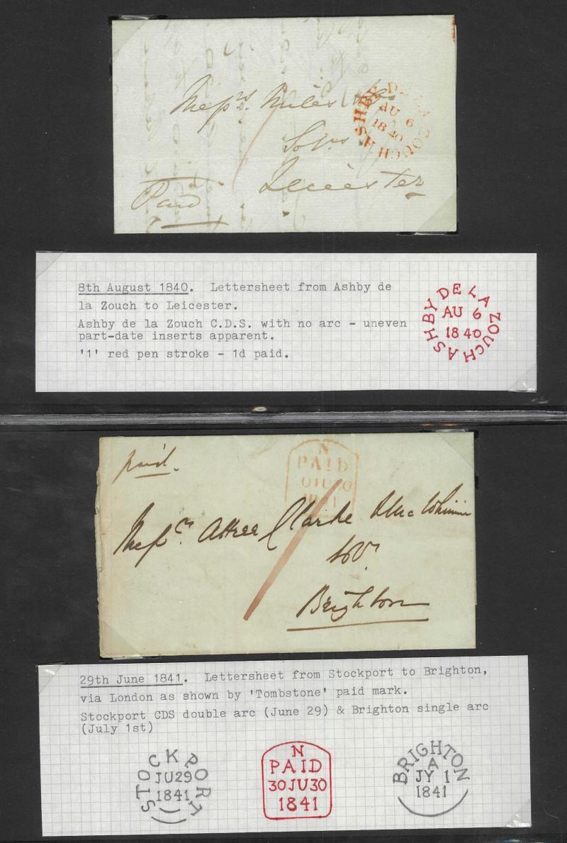 Inspector stamp in red to indicate official re-ratings, Post Office Reform range with 'PAID' markings and "1"[d] manuscripts including three pre-May 1840 (one with Shrewsbury 'TOO LATE' h/s) and another from Leeds with '1d' h/s plus 1841 Buckhurst