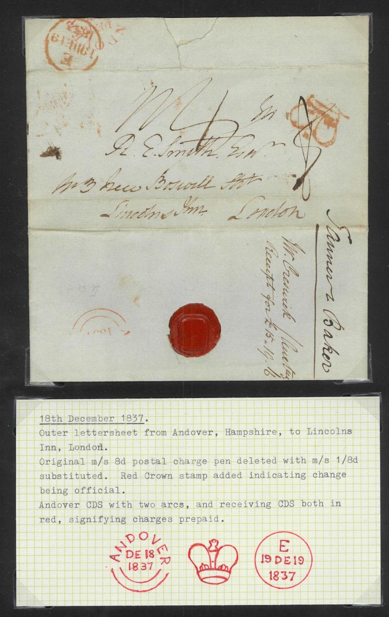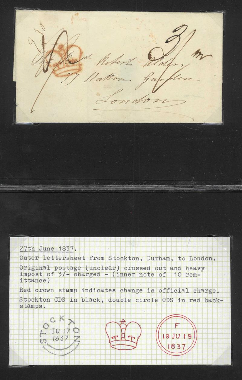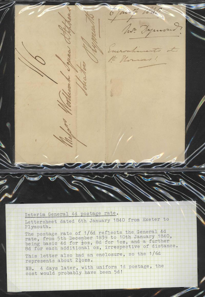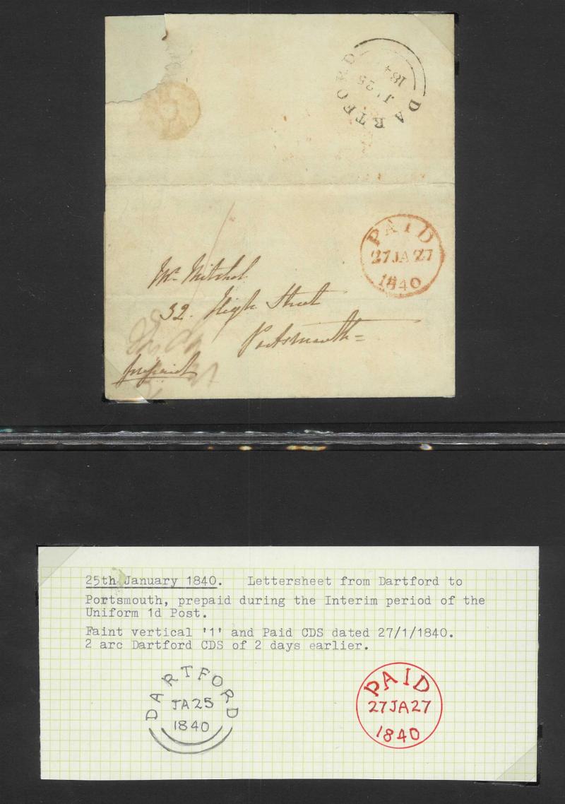 Inspector stamp in red to indicate official re-ratings, Post Office Reform range with 'PAID' markings and "1"[d] manuscripts including three pre-May 1840 (one with Shrewsbury 'TOO LATE' h/s) and another from Leeds with '1d' h/s plus 1841 Buckhurst