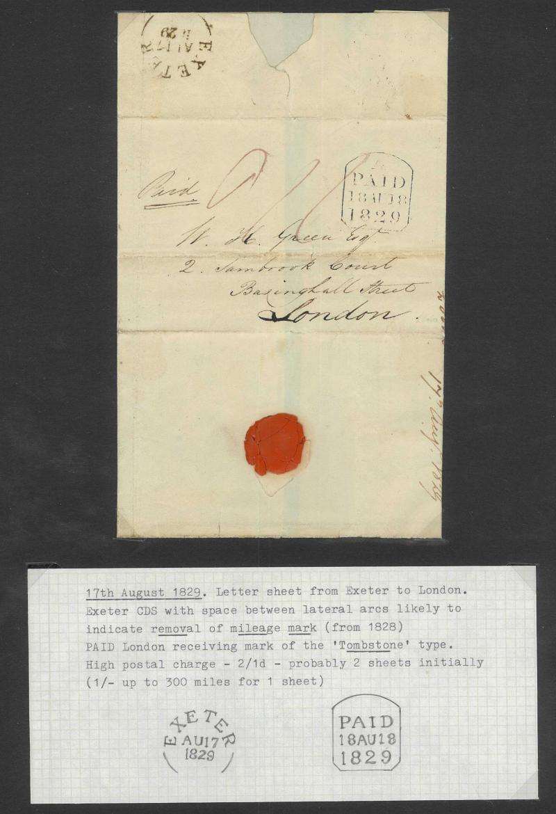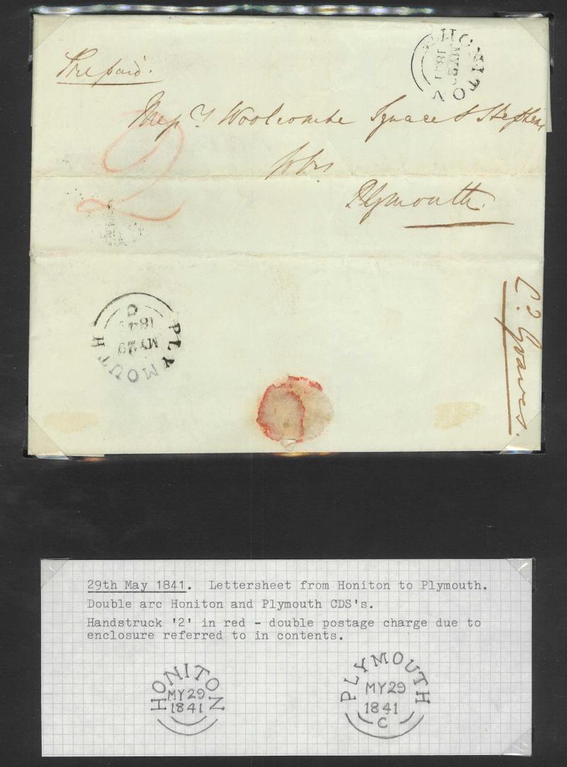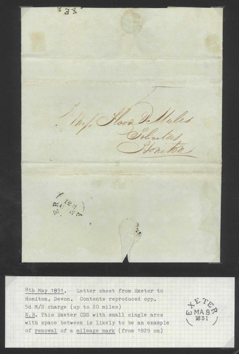 Post' handstamp (a small village in the Exeter district) alongside, routed through Exeter where cds and Maltese Cross were applied.