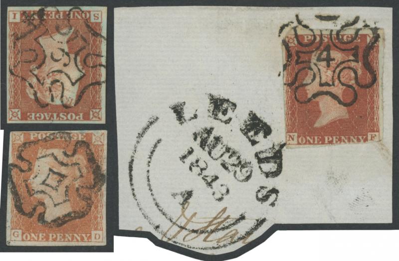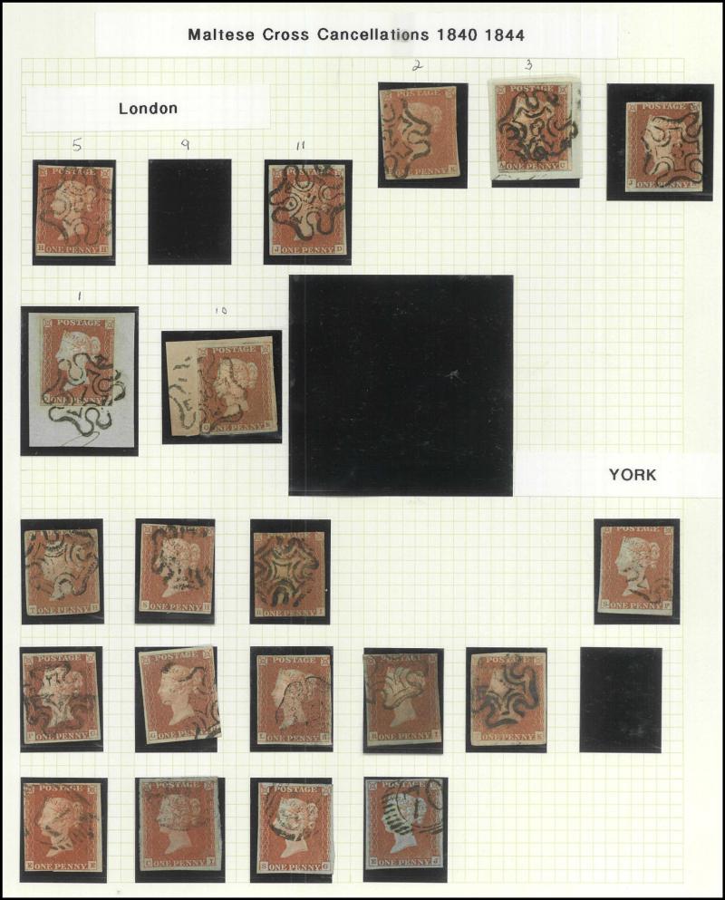 POSTMARKS: 1840-44 Maltese Crosses on imperf 1d reds with London numerals (all except '7', '8' & '12') with five on-piece, and