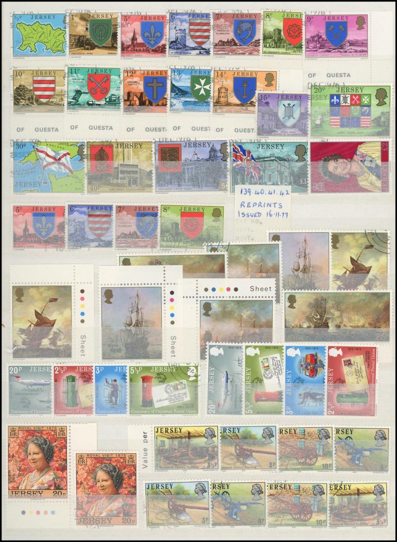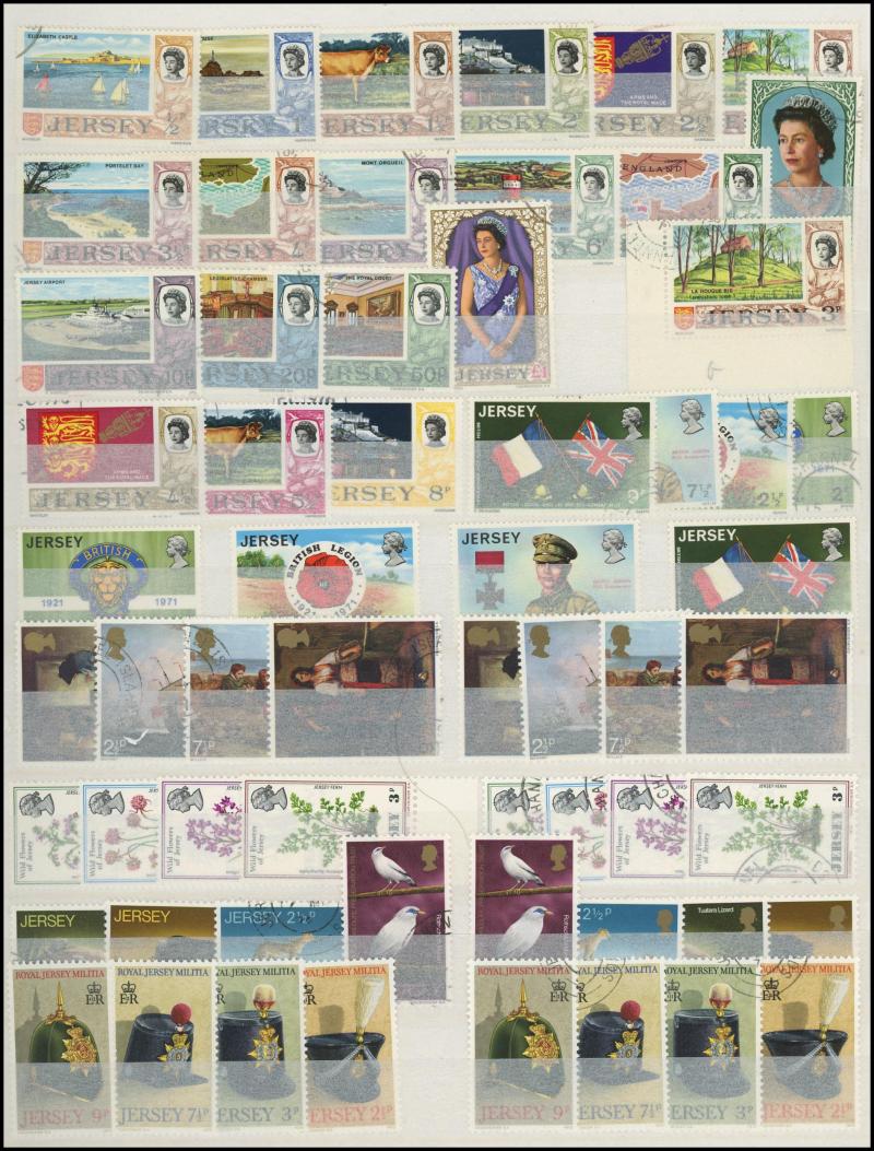 with M/Ss, Self-Adhesives, and booklets; plus Jersey 1970s-1990s mint and CTO in stockbook and hagners with booklets and Postage Dues, etc, some duplication. Weighs 9kg.