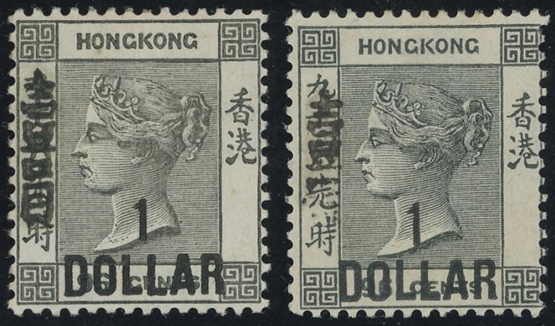 1898 QV Crown CA Watermark Surcharges with Additional Handstamp '1/DOLLAR' on 96c grey SG 52 or 52a, three examples with