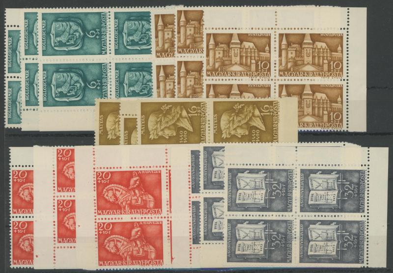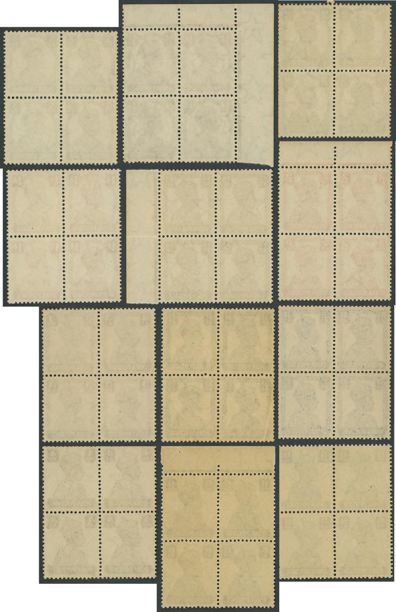 1940-43 New Design 3p to 14a SG 265-277 blocks of 4, mounted, Cat £200 for singles.