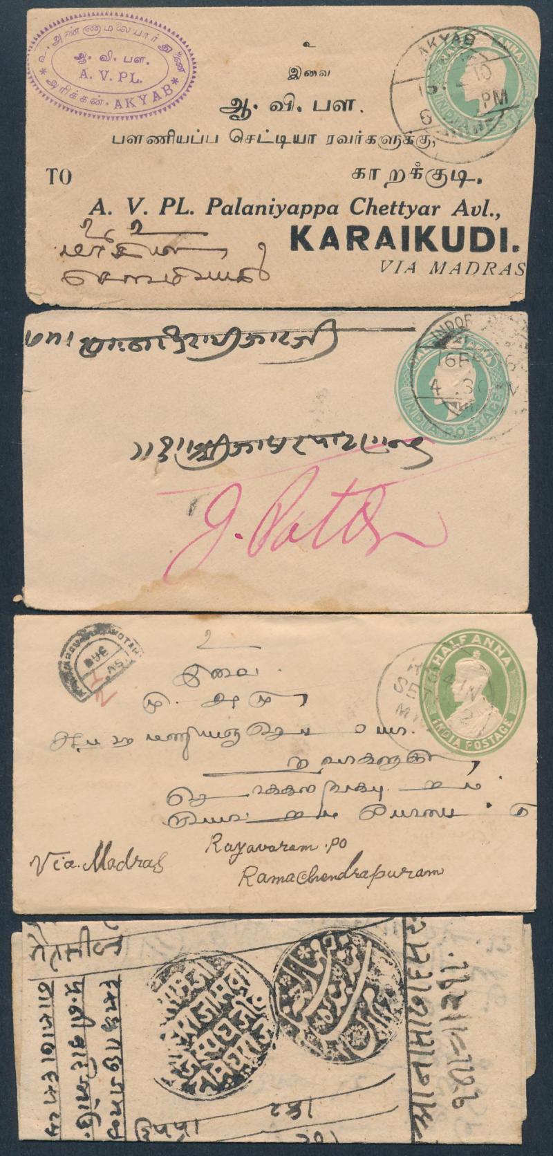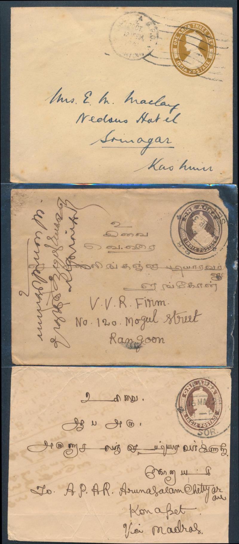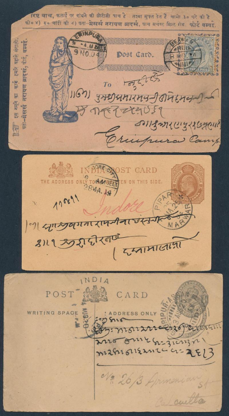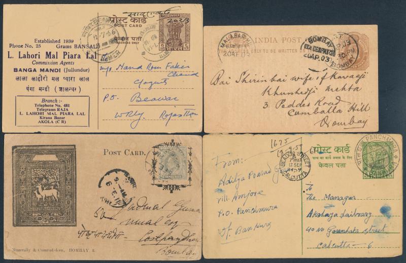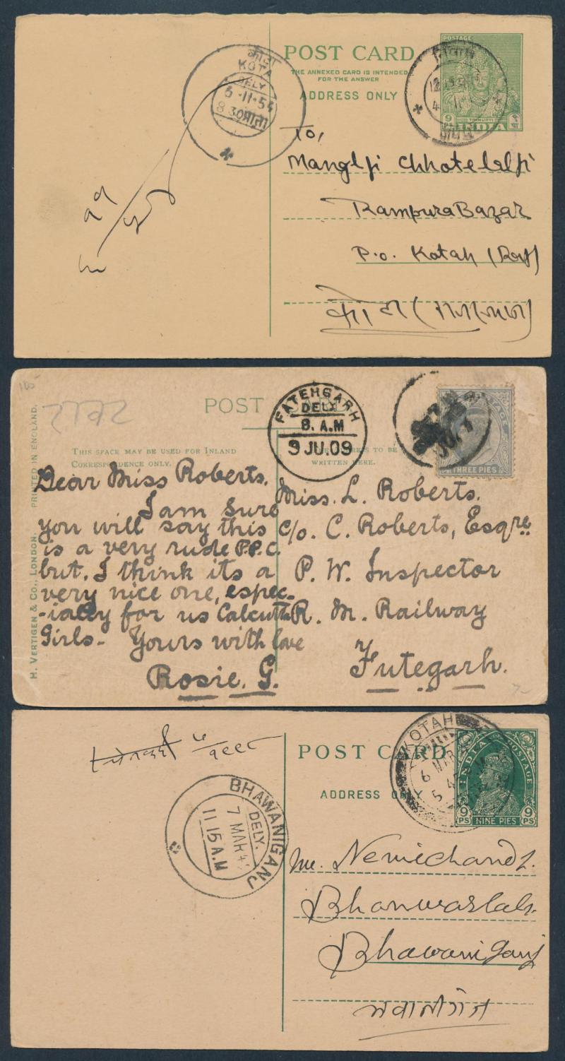 comprising 1) QV & KEVII material; 2) KGV period; and 3) post-World War II; includes some illustrated advertising, excellent datestamp content including TPOs and former Feudatory States, condition very mixed but generally of a higher standard than