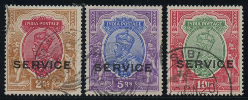 OFFICIAL STAMPS: 1912-23 KGV Definitives overprinted 'SERVICE' 2r to 25r SG O92-96 with telegraphic cds cancels including 'POONA