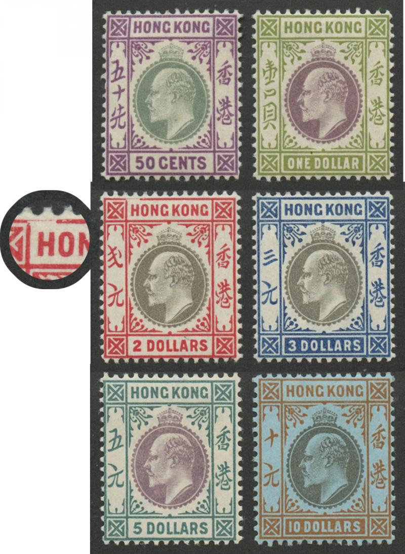 1903 KEVII Keyplates Crown CA Watermark 1c to $10 set SG 62-76, the $2 with Upper Frame Shaved above 'H' of 'Hong', centring