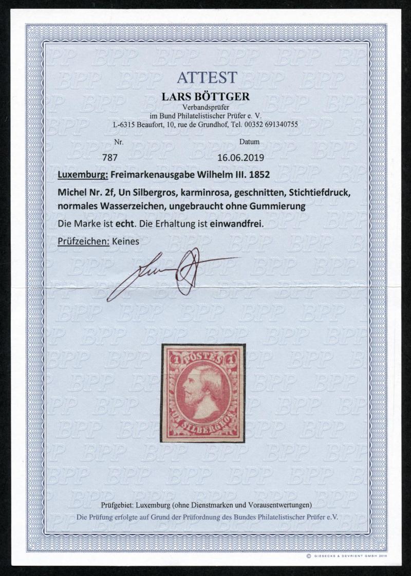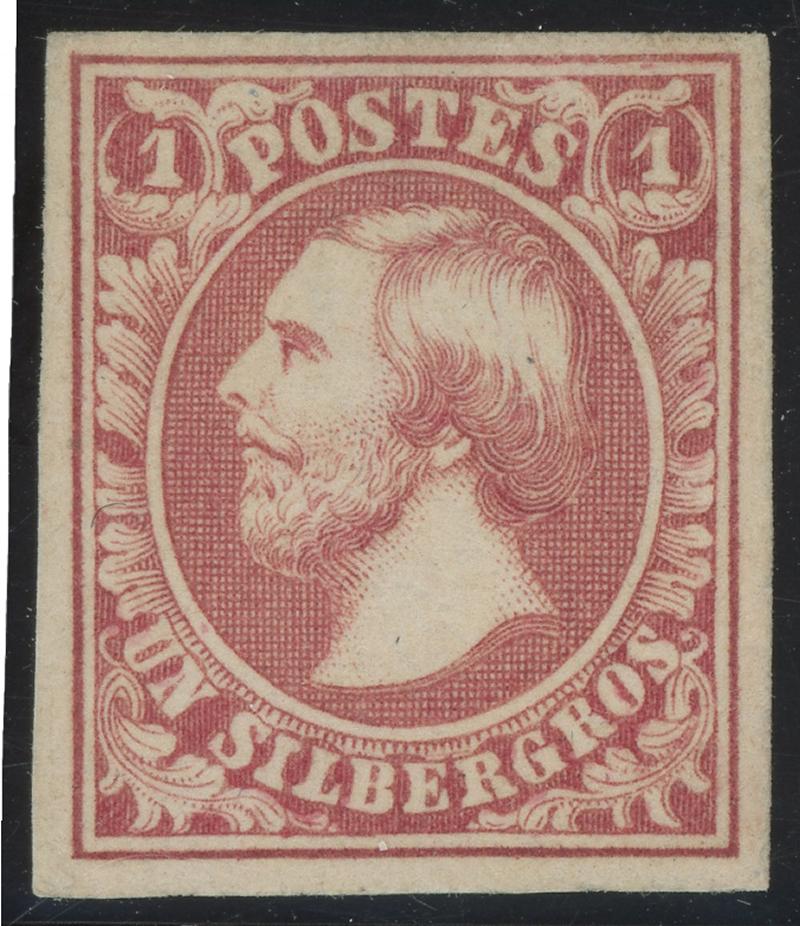 1852 Wilhelm III 1sgr carmine-rose Mi 2f (SG 3-5 group), margins good to large, unused, Cat €1600 (£2250). Superb. Lars Boettger