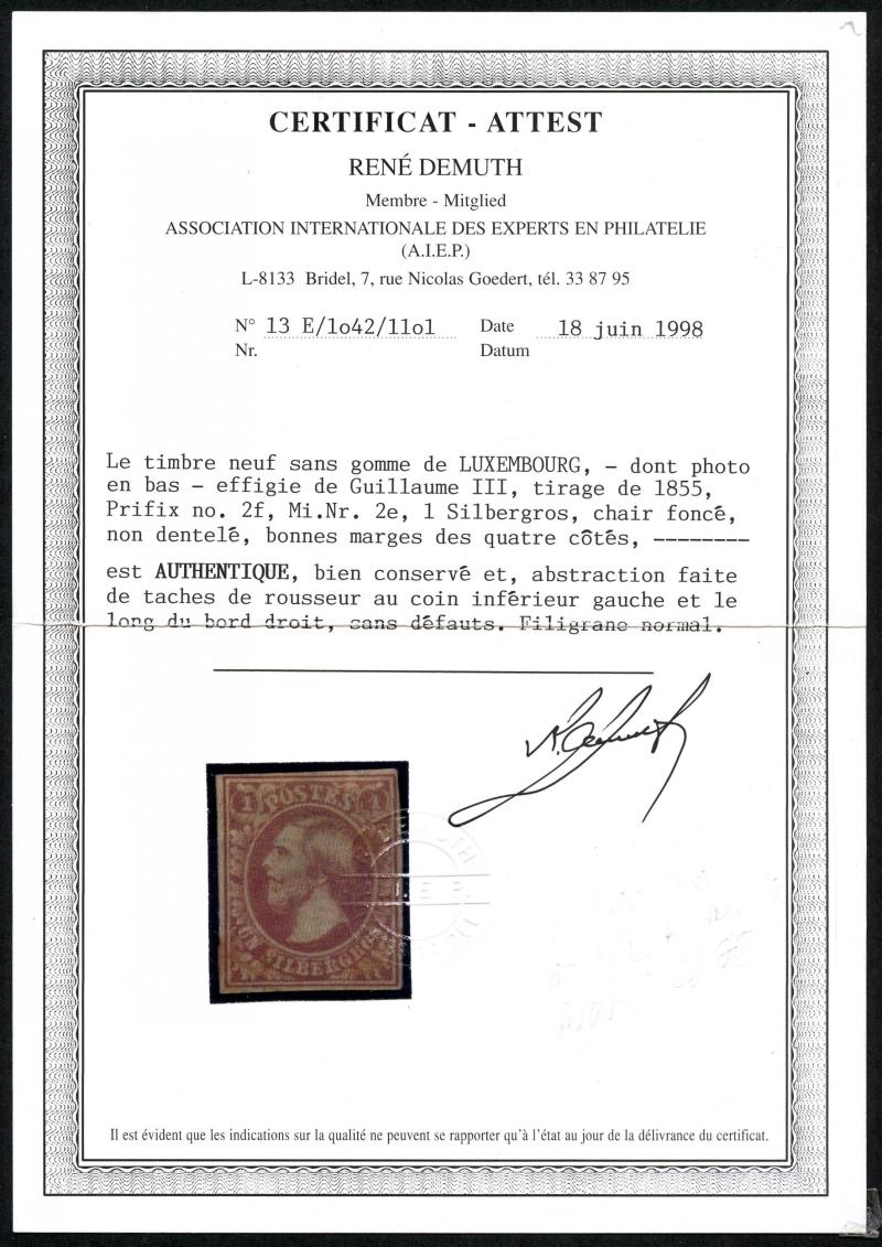 1852 Wilhelm III 1sgr brown-lilac-red Mi 2e (SG 3-5 group), margins close to good, unused, Cat €1600 (£2250). Renè Demuth