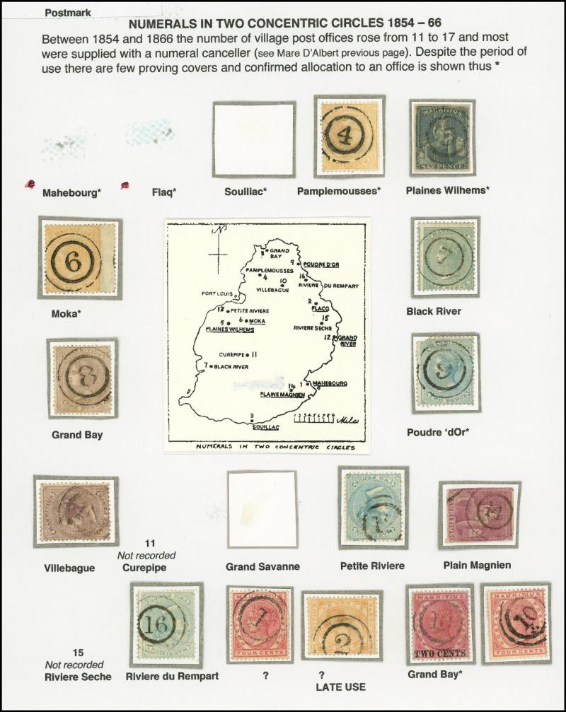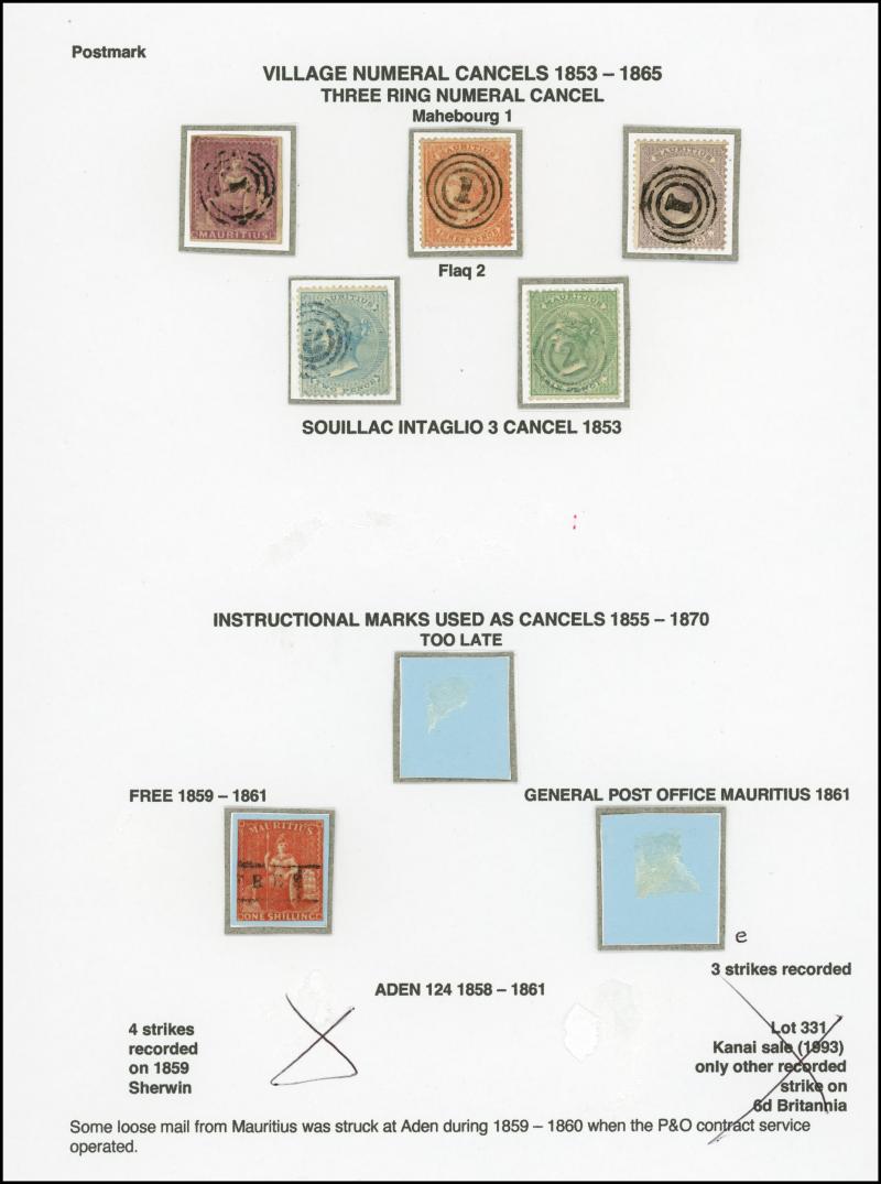 POSTMARKS: Display pages with superb 12-bar obliterator, 'target' cancel x7 (four of Mare d'Albert), Double-Ring Numerals '1' to