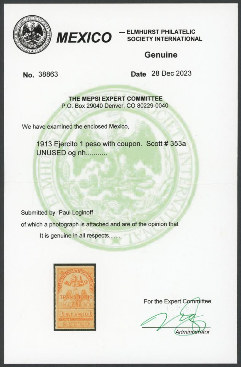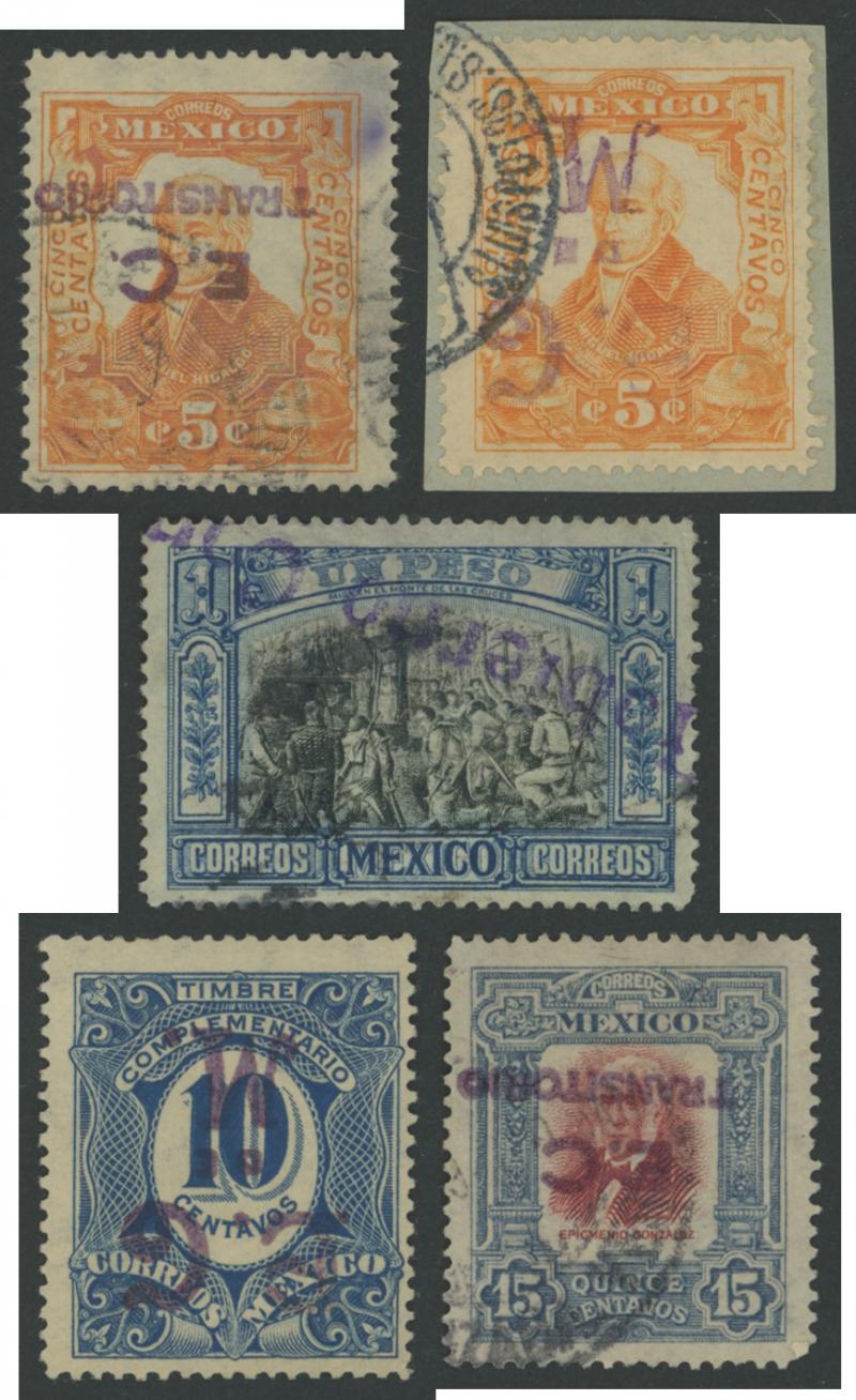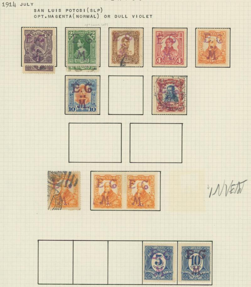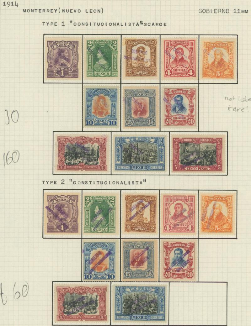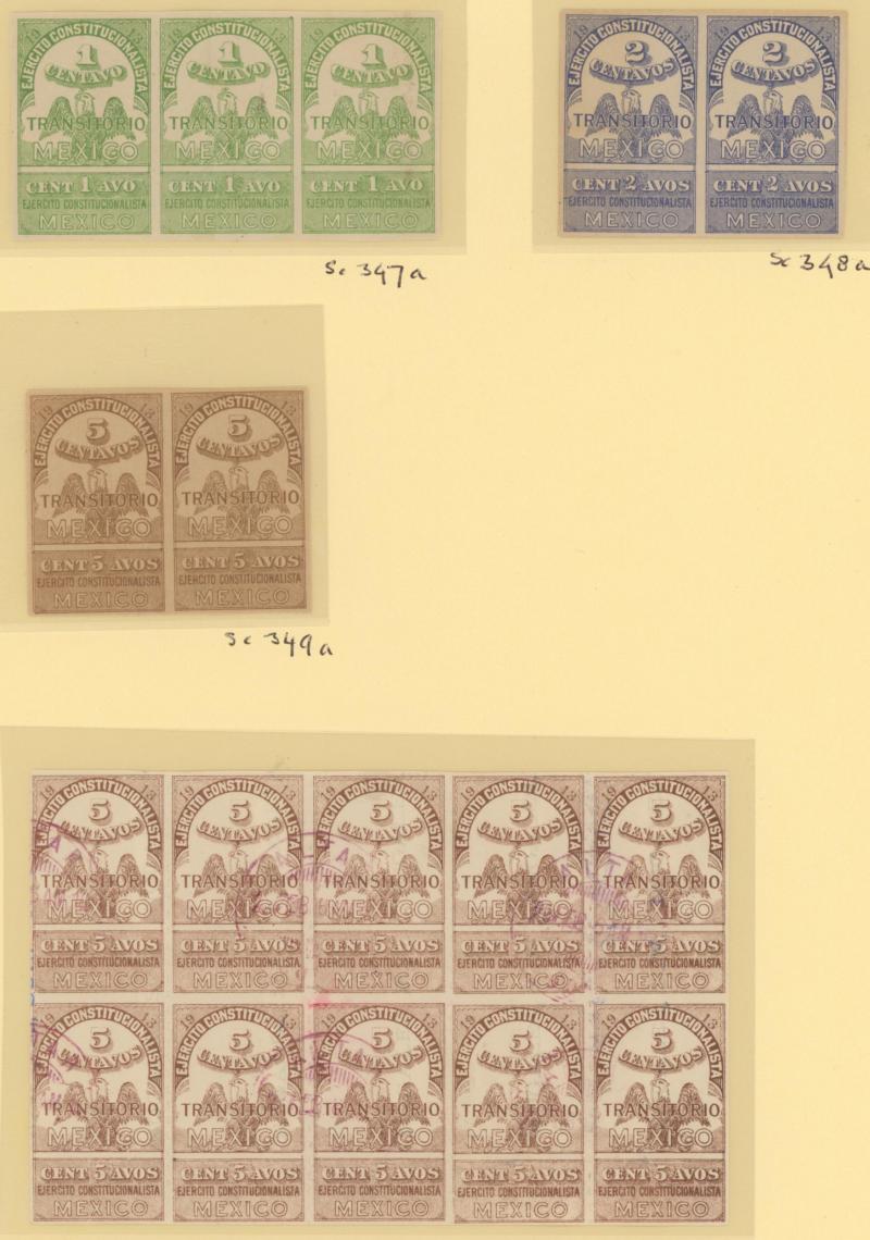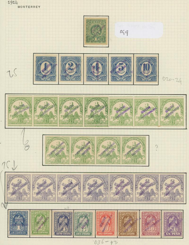 MEPSI Certificate) including 5c used block of 10 (5x2) plus unlisted 5p (**), 'PLATA/SONORA' 50c block of 4 one unit with ' LATA' Error (with MEPSI Certificate), 1914 'GSM' Handstamps to 1p plus Postage Dues set, Carranza Small Monogram set to 5p