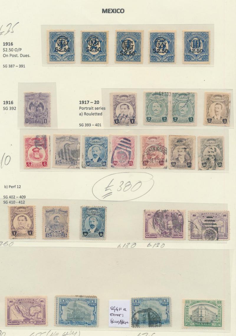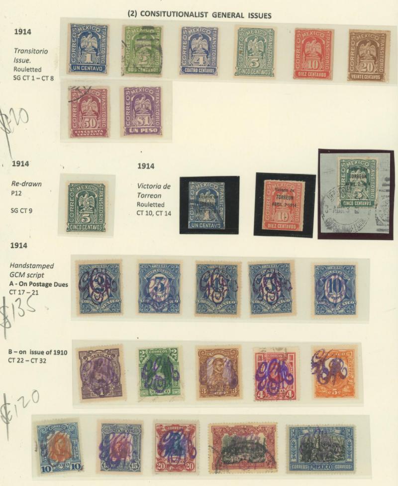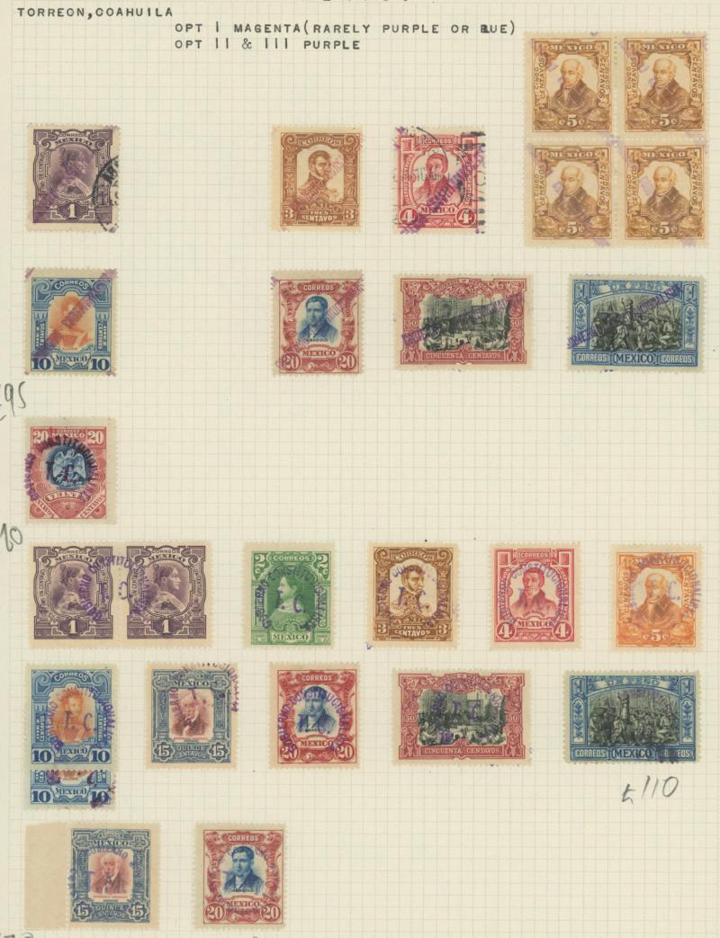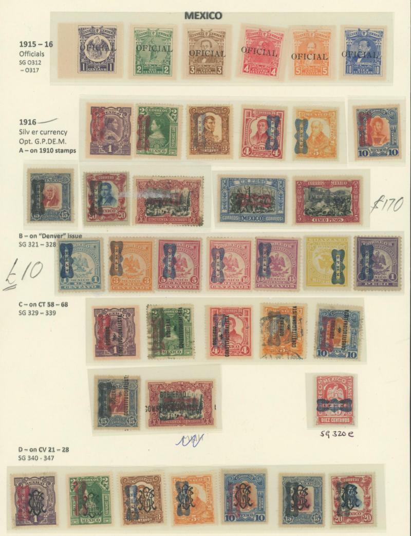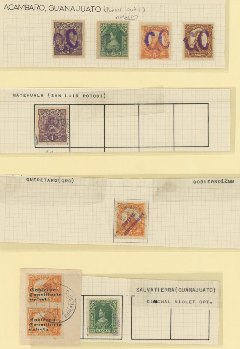 Potosi 5c (used) & Postage Due 10c both with the Handstamp Inverted; San Pedro 'S.P.' Handstamps 1c to 3c & 5c all unpriced plus 50c with the Handstamp Inverted & 1p unlisted values; Toreon straight-line to 1p & 'T.C.' to 1p; Zacatacas 1c used strip