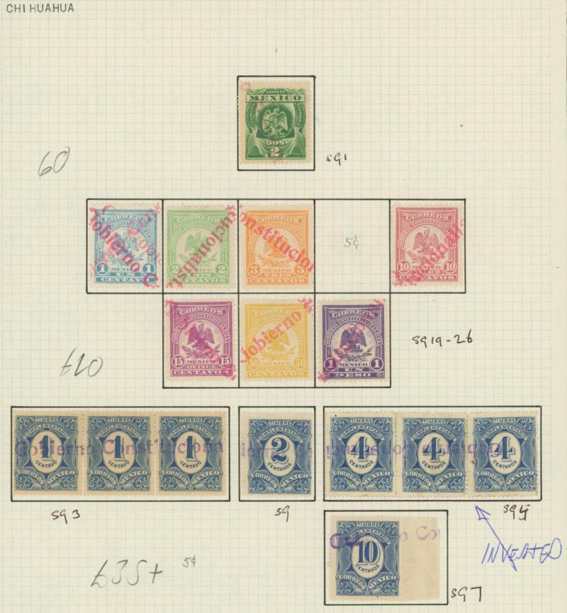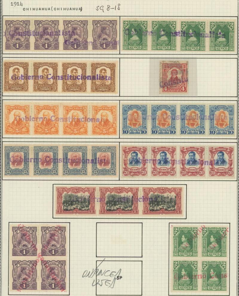 1914 Constitutionalist Local Overprints including Chihuahua 'Gobierno Constitucionalista' Handstamps complete on 1c to 20c strips
