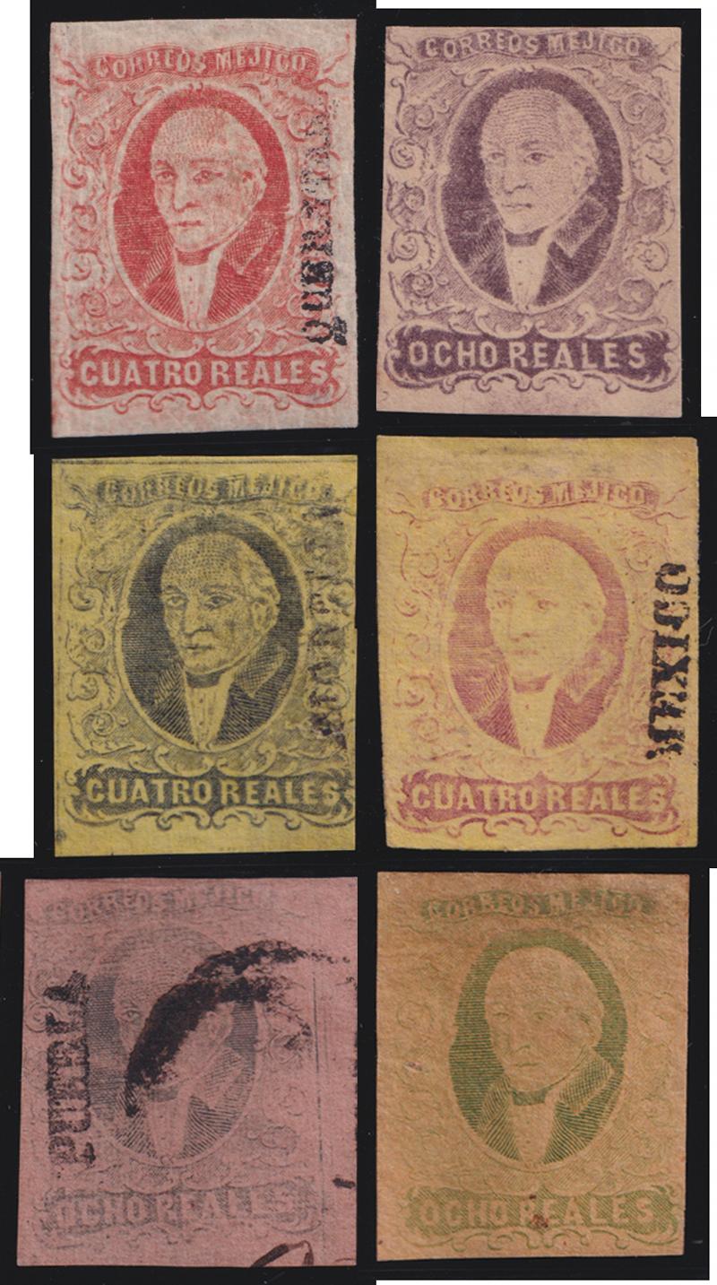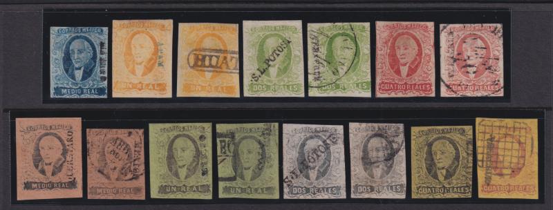 1856-61 Hidalgo Imperforate selection most with district handstamps including 4r red *, unused (no handstamp) & used and 8r
