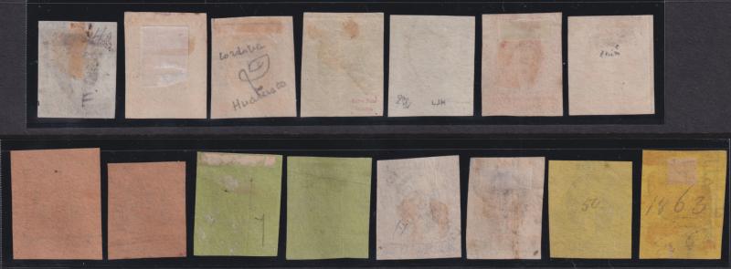 x5, 8 x3, 10 x15, 11 x2, 12 x2, 14 x2, 15 x6, etc, condition quite variable and mostly ungummed/regummed but some with apparently original gum, Cat £12,500+ for mint; plus a good range of used printings. Nothing has been expertised so personal