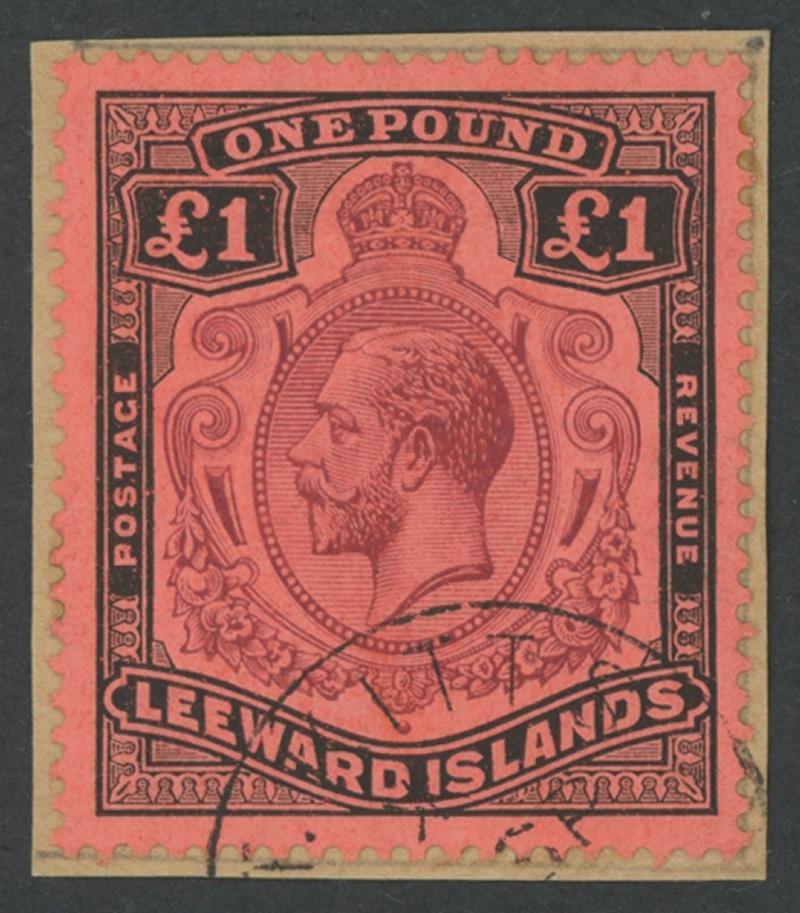 1921-32 KGV Keyplates Multiple Crown CA Watermark £1 purple & black/red SG 80, well-centred, on small piece with small-part St