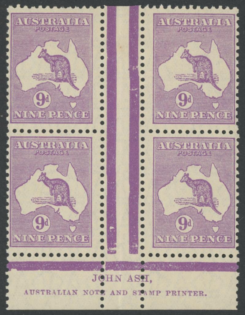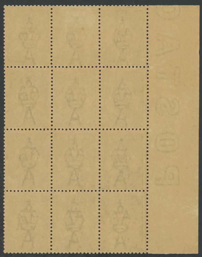 known mint block. Arthur Gray's similarly-configured block of 12 from the right of the left-hand pane, with similarly aged gum and all but one unit unmounted, sold for US$19,550. It seems likely that both blocks are from the same sheet and were