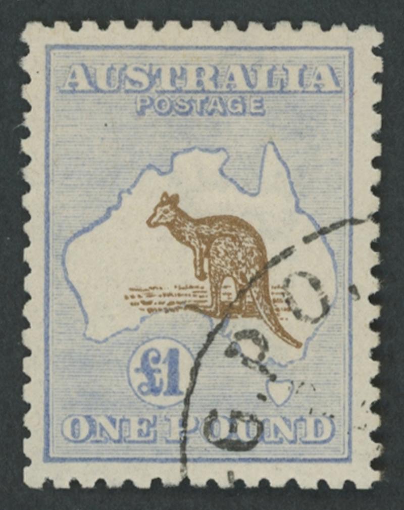£1 chocolate & dull blue ACSC 52Aw (SG 44), well-centred, CTO with 'GPO MELBOURNE/VIC' cds, Cat $4000 (£1600 for postally used). (Image1) (Image2)