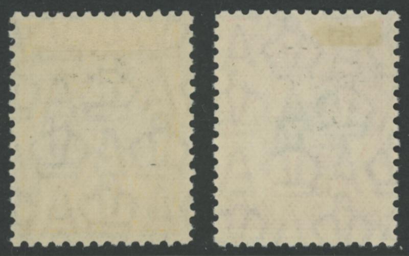 56Ax(D)j, well-centred, lightly mounted, plus another example with White Flaw Adjoining NSW Coast [Pos R48] ACSC 56Ax(D)va, rounded corner. (2)