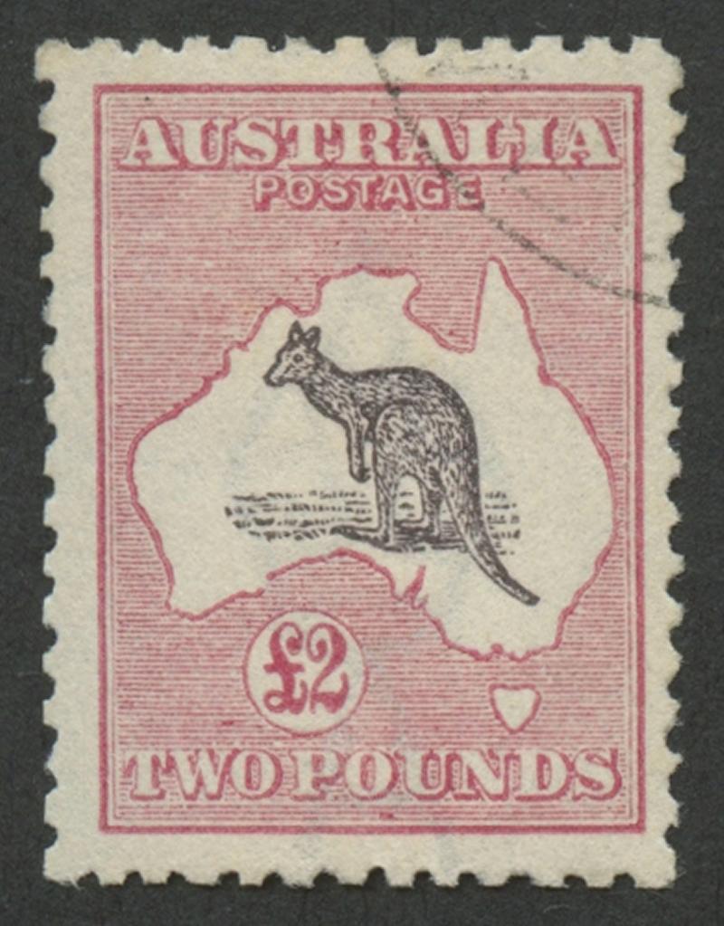 £2 purple-black & rose SG 45b, CTO with Melbourne cds ACSC 56Cw, clean-cut perfs, no gum, Cat $6500 (£2750 for postally used). (Image1) (Image2)
