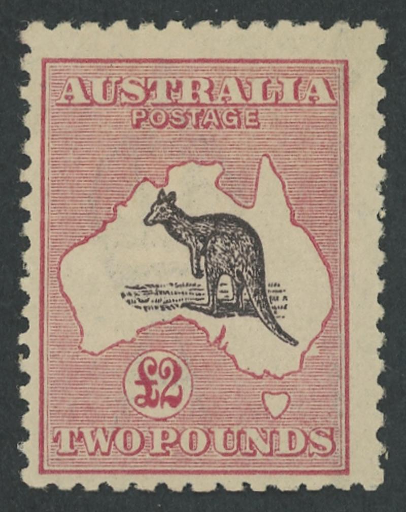 £2 purple-black & carmine-rose ACSC 56C (SG 45b), tiny hinge remainder, lightly aged gum with a small patch of gum loss, Cat $6500