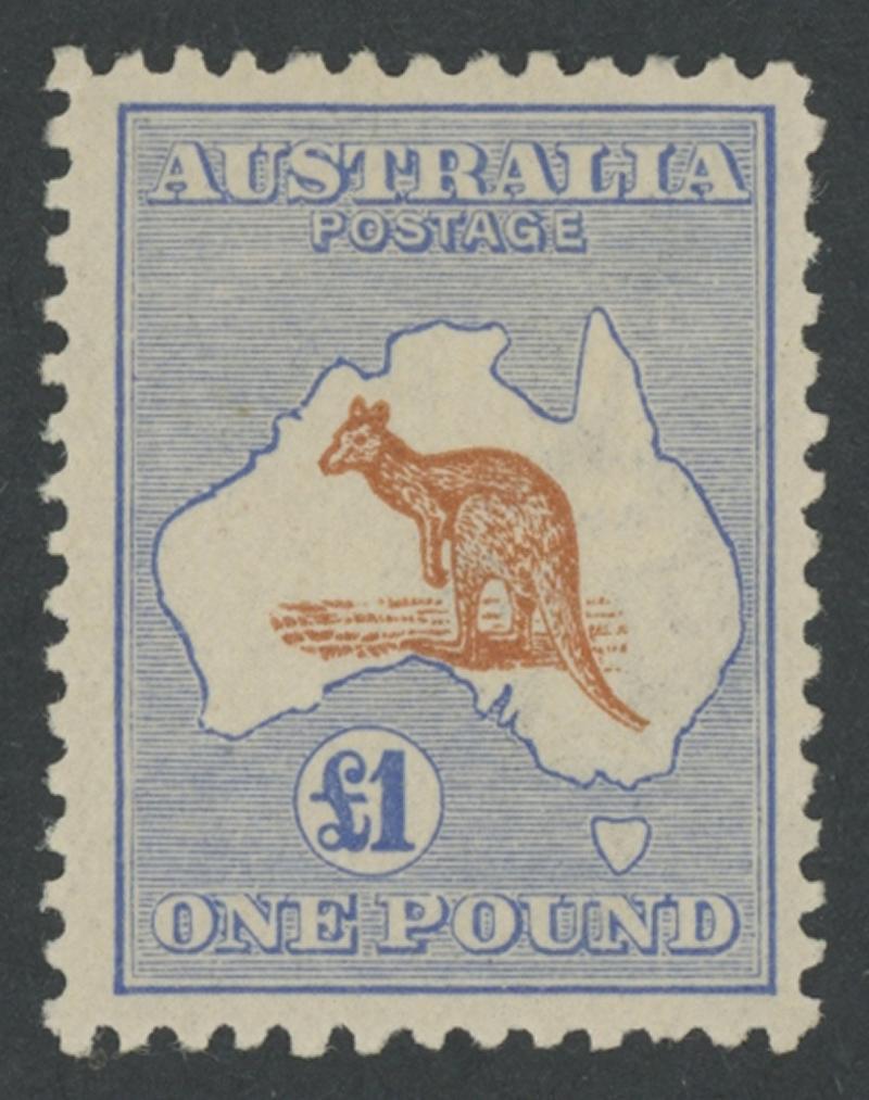 £1 chestnut and blue Watermark Inverted ACSC 52Ba (SG 44aw), a couple of uneven perfs at upper-right, lightly mounted, Cat $4500