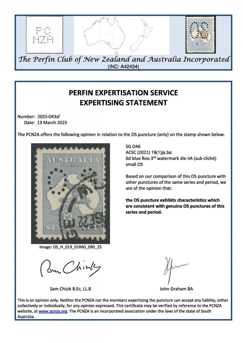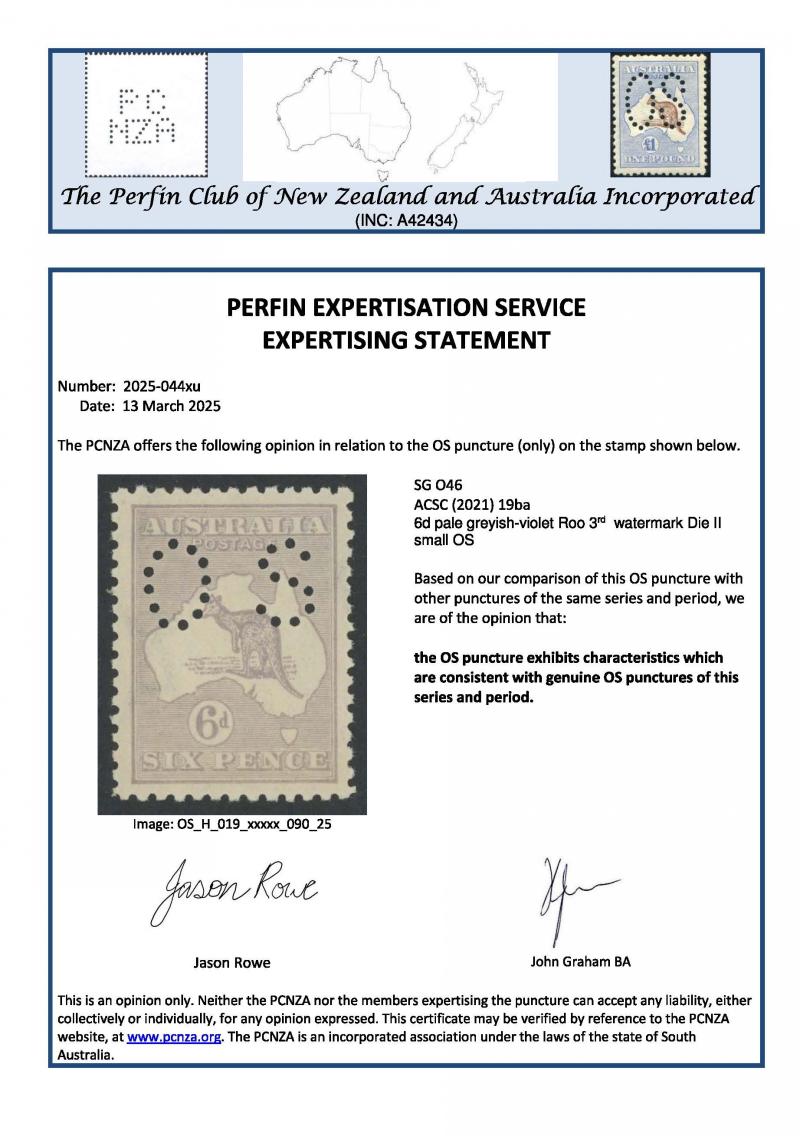 the left frame break, under-catalogued at $3000 being an extrapolation of 75% of $4000 for unpunctured (£1900). PCNZA Certificate (2025).