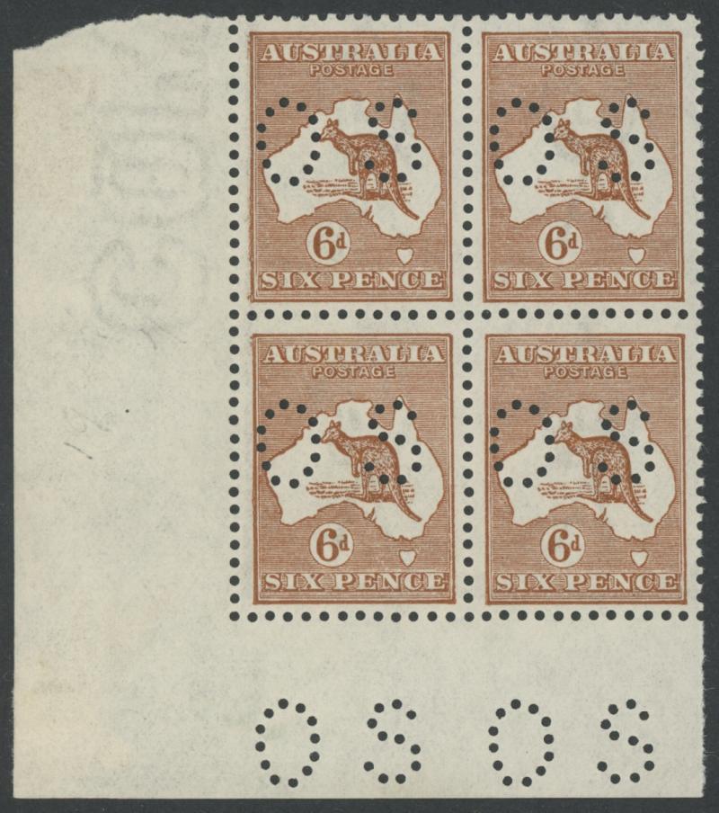 6d chestnut Die IIB ACSC 21ba (SG O76) marginal block of 4 from the lower-left corner of the sheet, unmounted and fresh, Cat $700+
