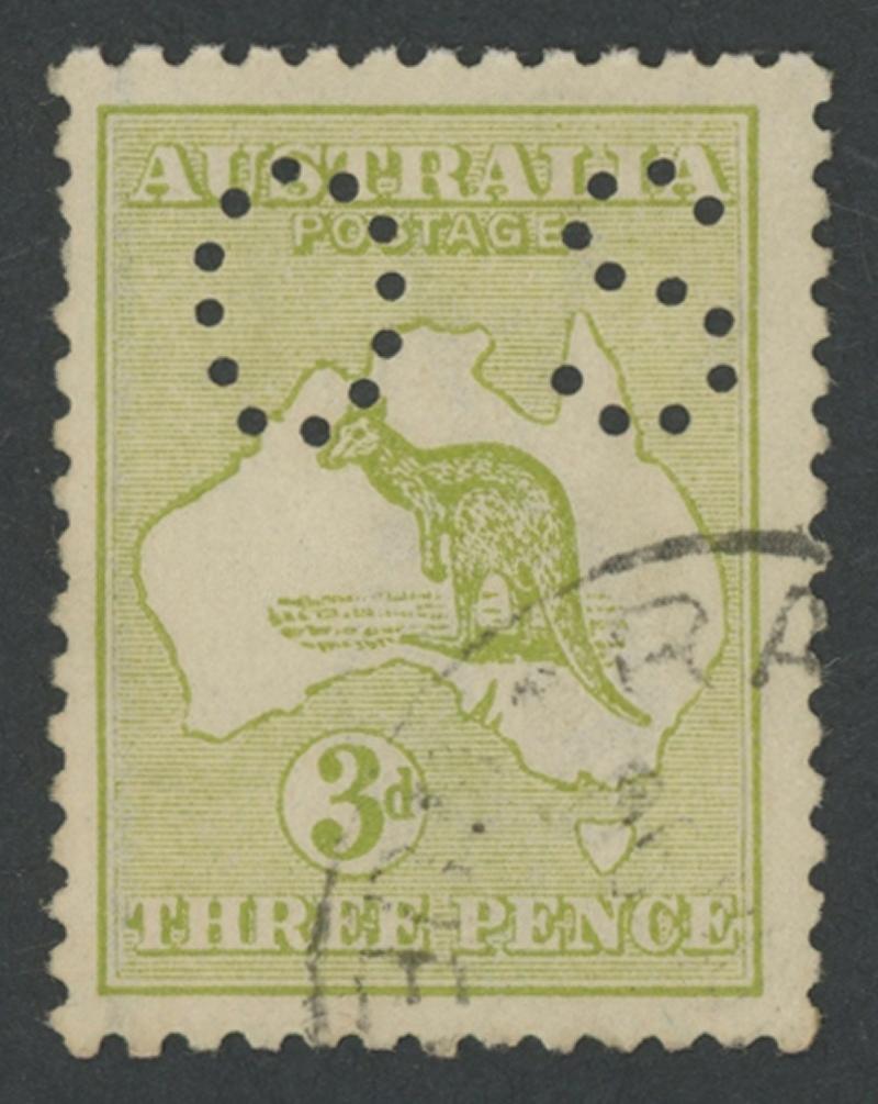 3d pale olive-green Die II Watermak Inverted ACSC 13Jaa, well-centred, a couple of slightly uneven perfs at left, light cds corner