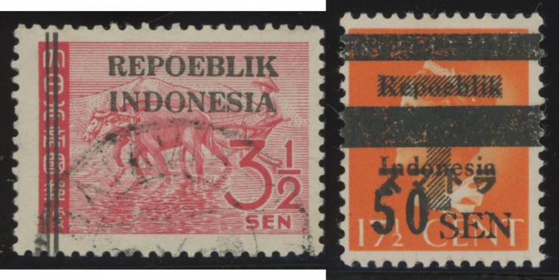 INDONESIA: 1945-46 Java & Madura 'REPOEBLIK/INDONESIA' overprints on Netherlands Indies Rice & Dancers (both Bandung & Jogjakarta