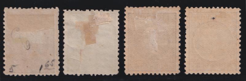 (unused), the 5c Irregular Compound Perf 11½x12x12½x12, the 12½c Perf 12½ (rounded corner), the 15c Perf 13x14, plus 30c green SG 44, centring variable, a few with some uneven perfs, most with hinge remainders, the 2½c unused without gum, Cat £1450+.