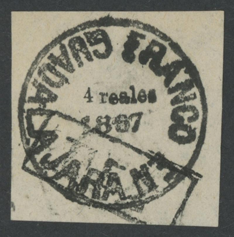 GUADALAJARA PROVISIONALS: 1867 First Printing Wove Paper Imperforate 4r black/white SG 4 (Scott 8), margins good to large, small