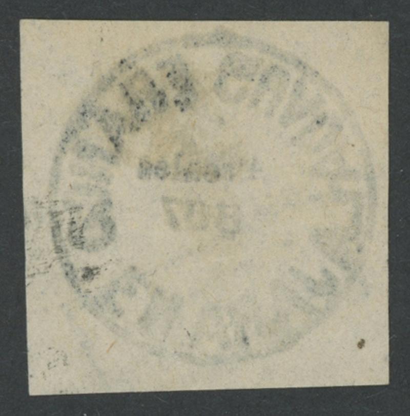 roulettes at upper-left & lower-right mostly clear of the design, small-part oval cancel, Cat £190 (US$700). (Image1) (Image2)